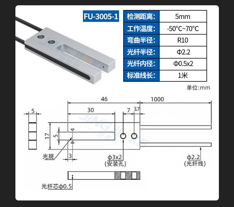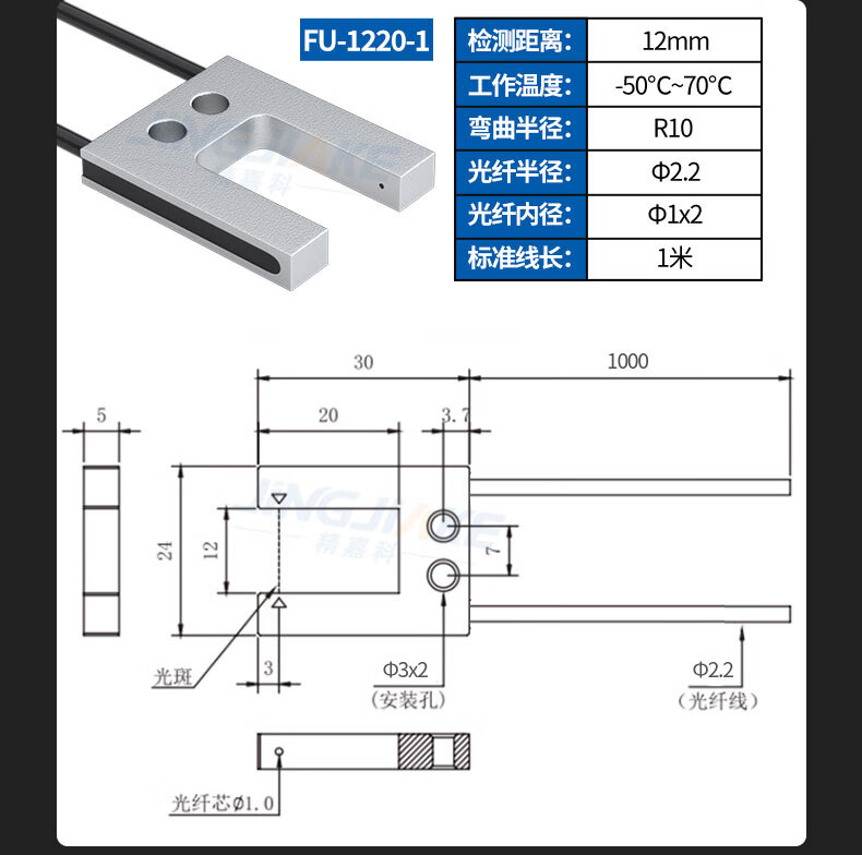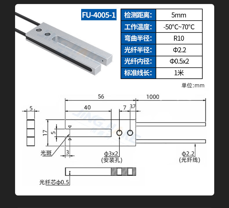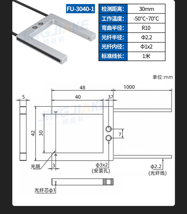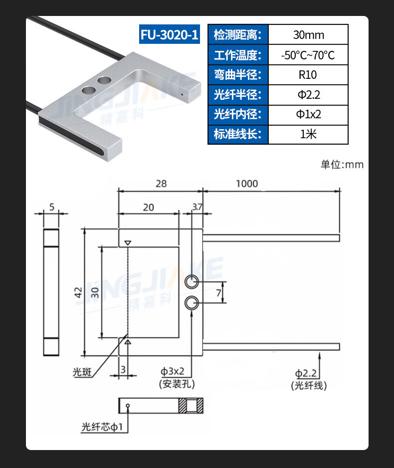 Yue Changsheng slot type through-beam fiber sensor U-shaped fiber probe amplifier terminal machine label positioning correction sense new BV-SK40-II amplifier + matching FU-2