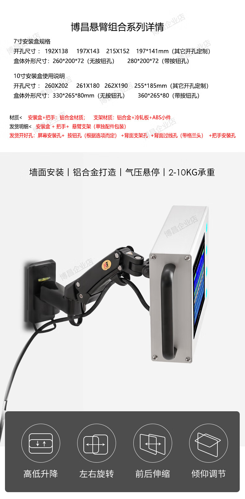 Touch screen installation box touch screen bracket rotating telescopic cantilever bracket Wei Luntong 7-inch 10-inch control box F150 cantilever (black) + installation box + handle 2 22 button holes 2 22 button holes 7:1