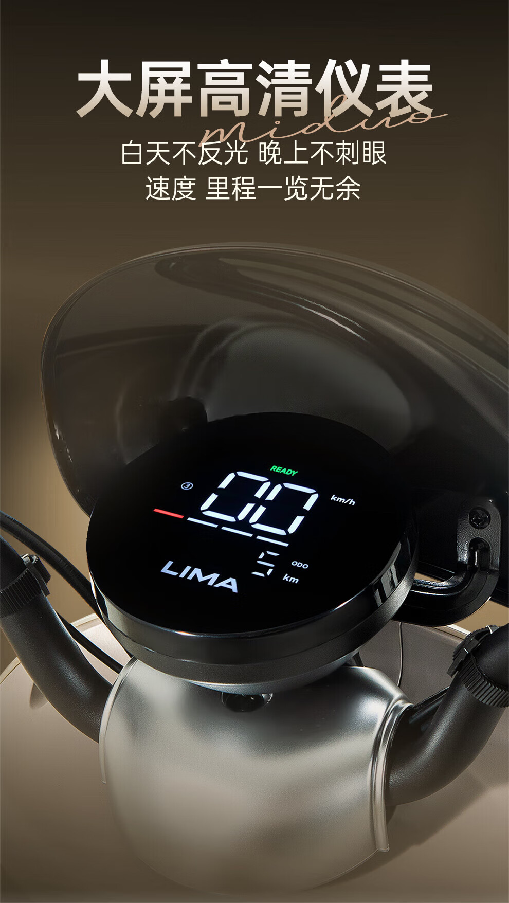 Lima Motorcycle Mido 80km long range electric vehicle 1200W high-speed electric motorcycle lead-acid battery 60V20Ah takeaway and work transportation battery vehicle Suya White/Apricot Tea Coffee