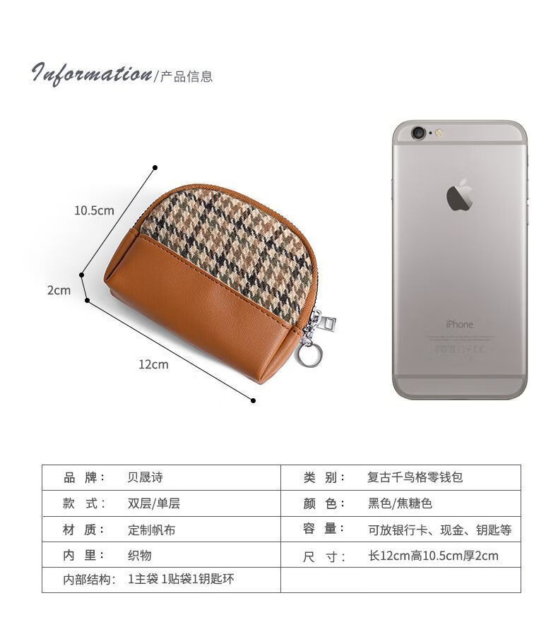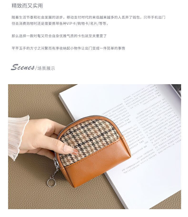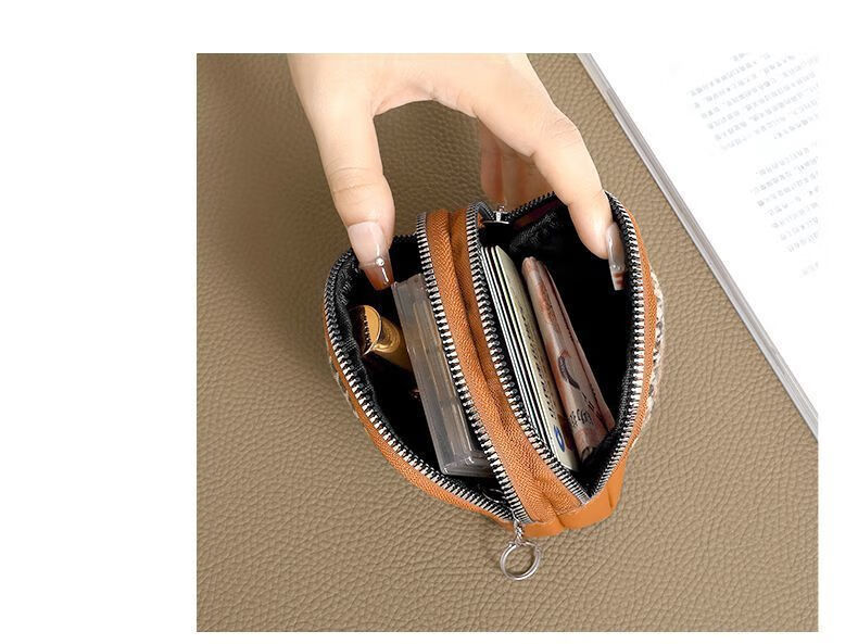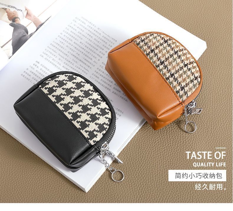 Qisi flower canvas small coin purse for women, fashionable niche design, new mini fabric key coin purse all-in-one bag, Chidori brown/single layer, factory upgraded thickened version/waterproof/oilproof/wear-resistant
