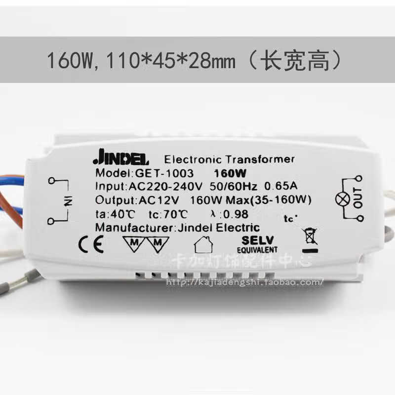 JINDEL Jindeli transformer G4 crystal 220 to 12v electronic transformer 80w105w120w160w spot GET 1003-160w length, width and height 110*