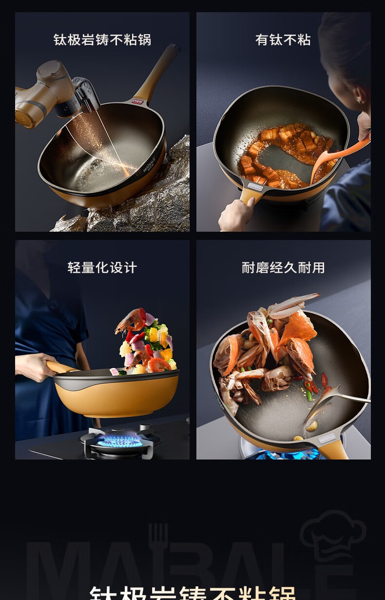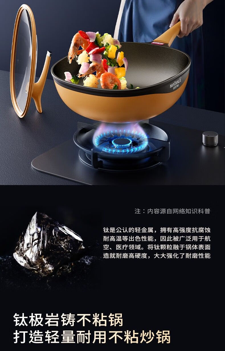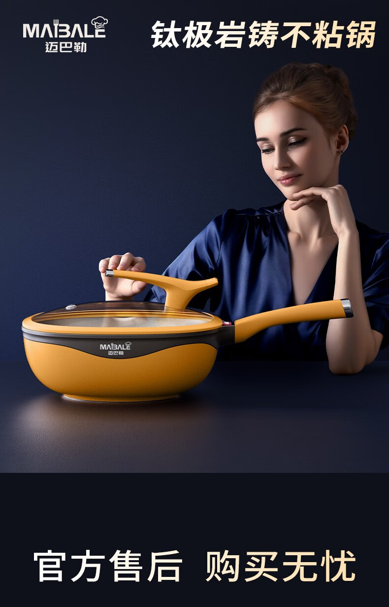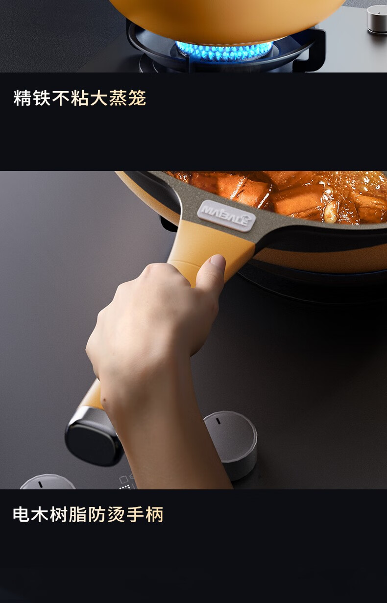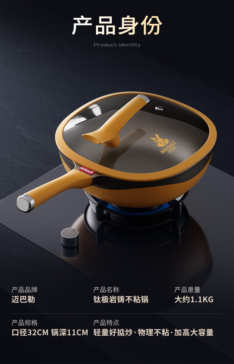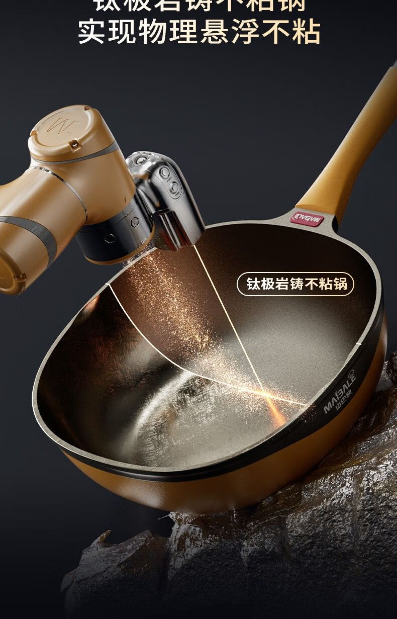 Maibale titanium rock cast non-stick pot home wok genuine no matter the stove gas stove universal Maibale non-stick pot 32cm + lid + steamer + spatula + pot brush 2