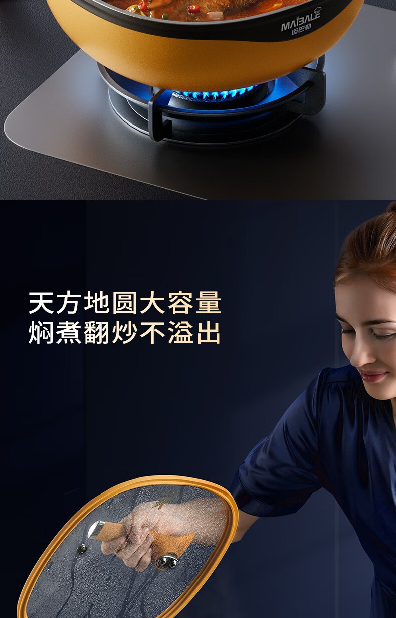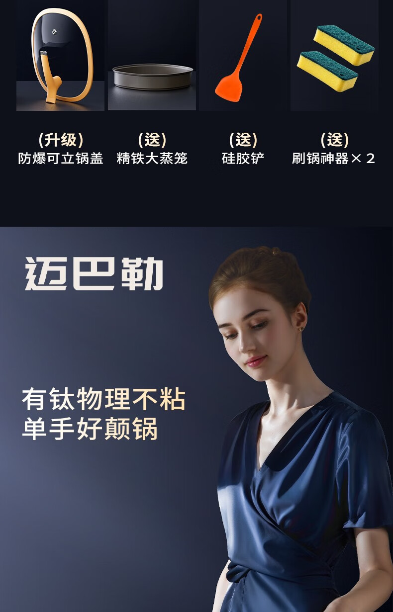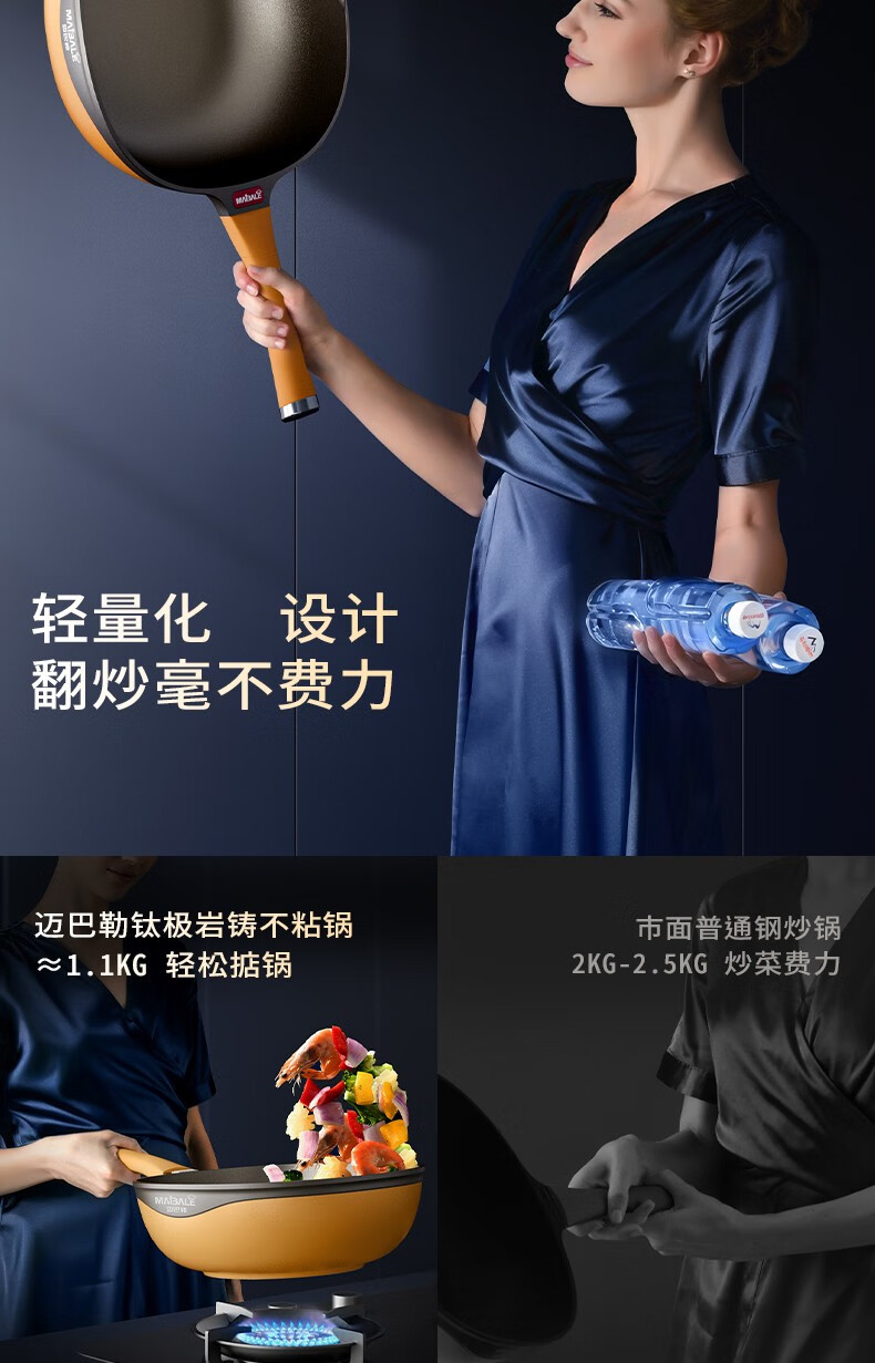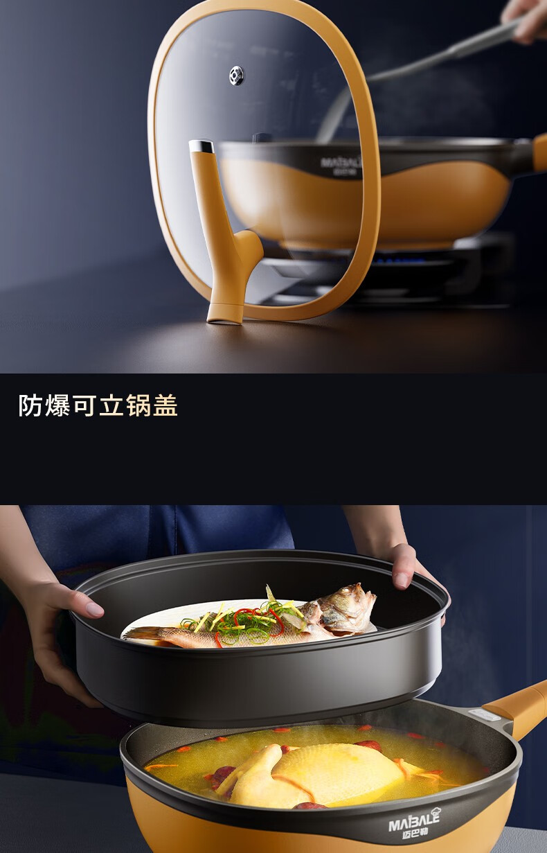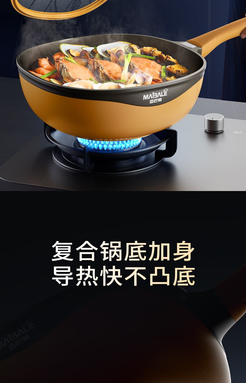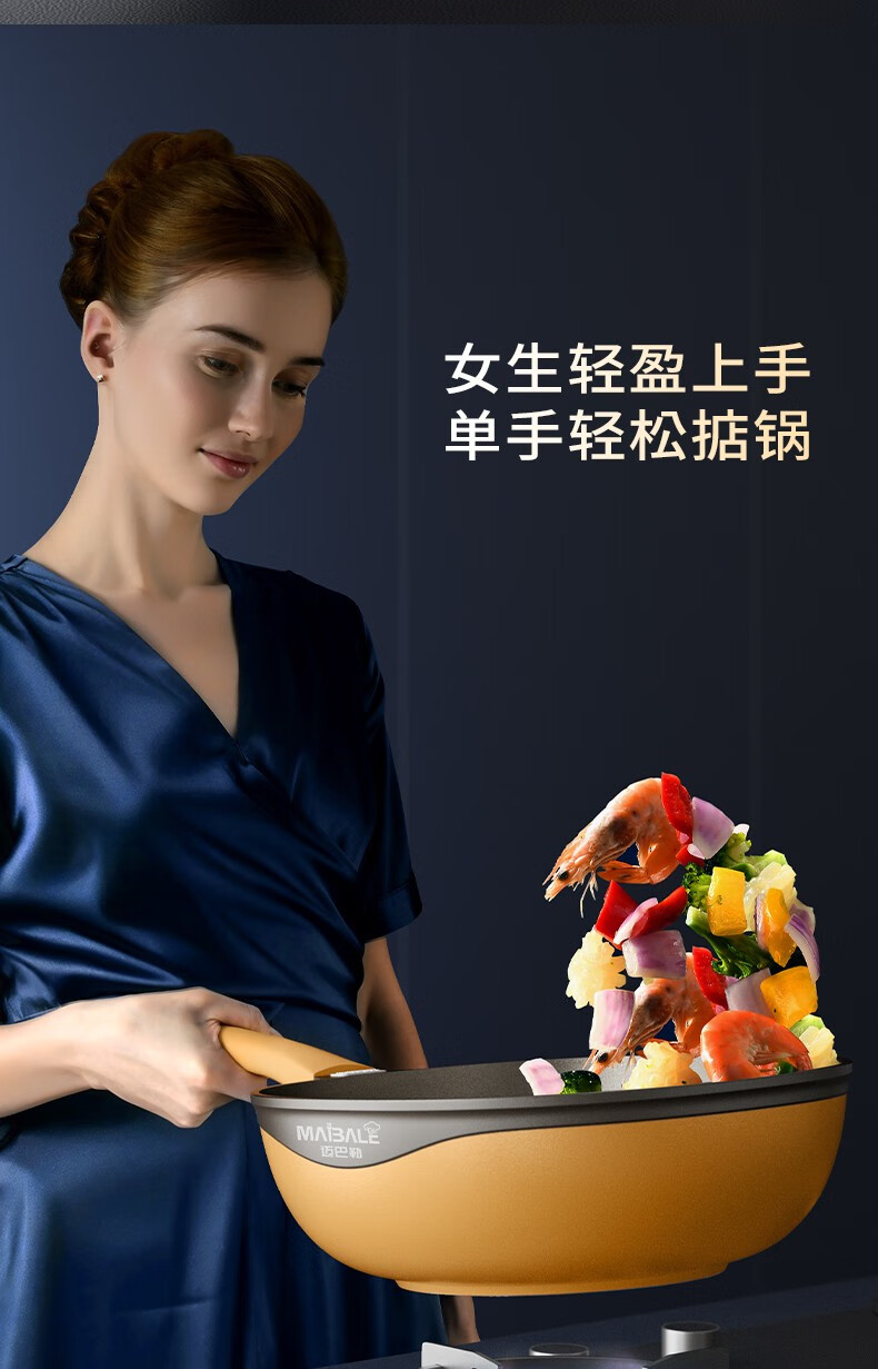 Maibale titanium rock cast non-stick pot home wok genuine no matter the stove gas stove universal Maibale non-stick pot 32cm + lid + steamer + spatula + pot brush 2