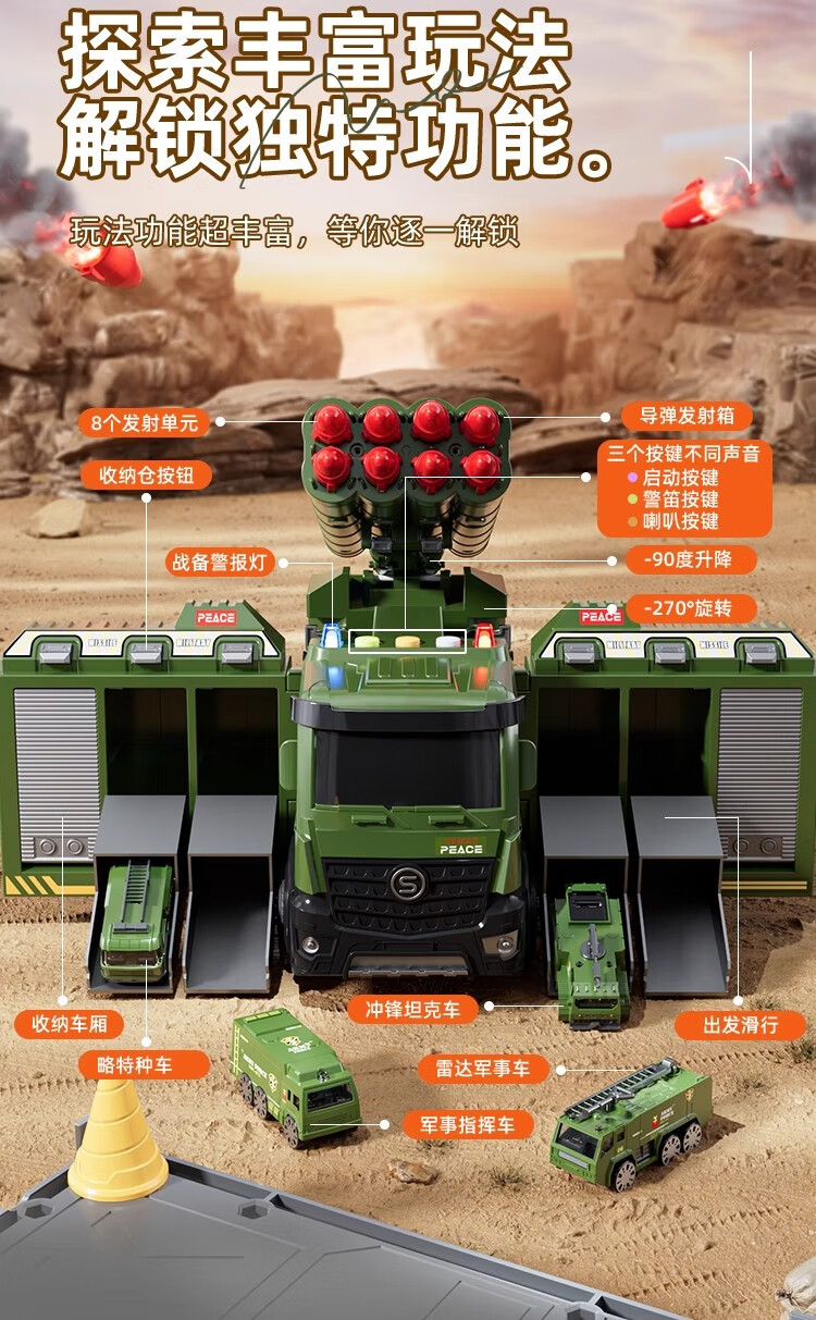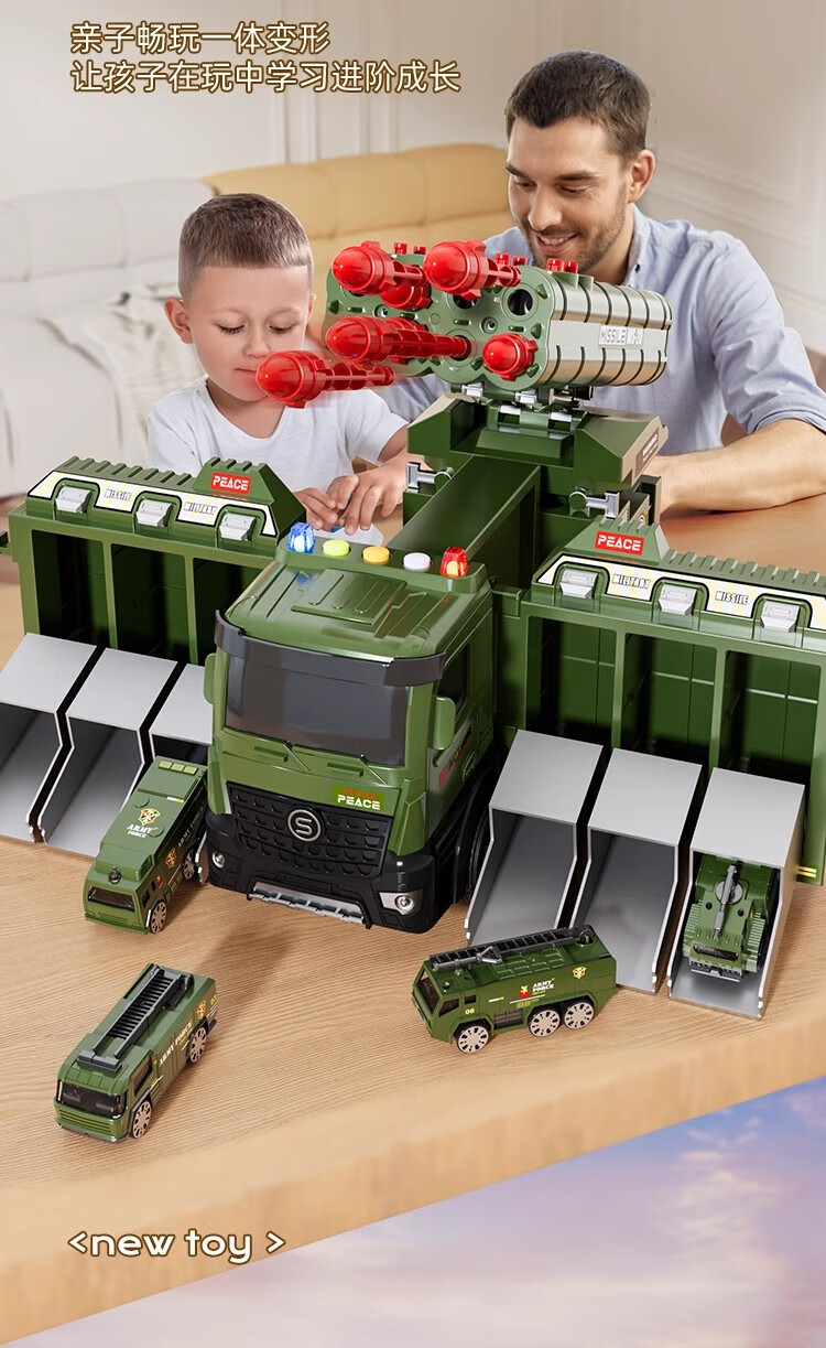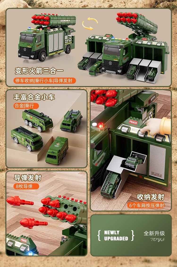 Bei Chuzhong children's toys 1-3-6 years old track car toy boy birthday gift boy child 2-4-5 years old alloy car deformation storage missile car 6 alloy + early education + light and sound effects gift box two or three missile car 2025 most popular toy high-end launch rocket launcher Sam New Year gift