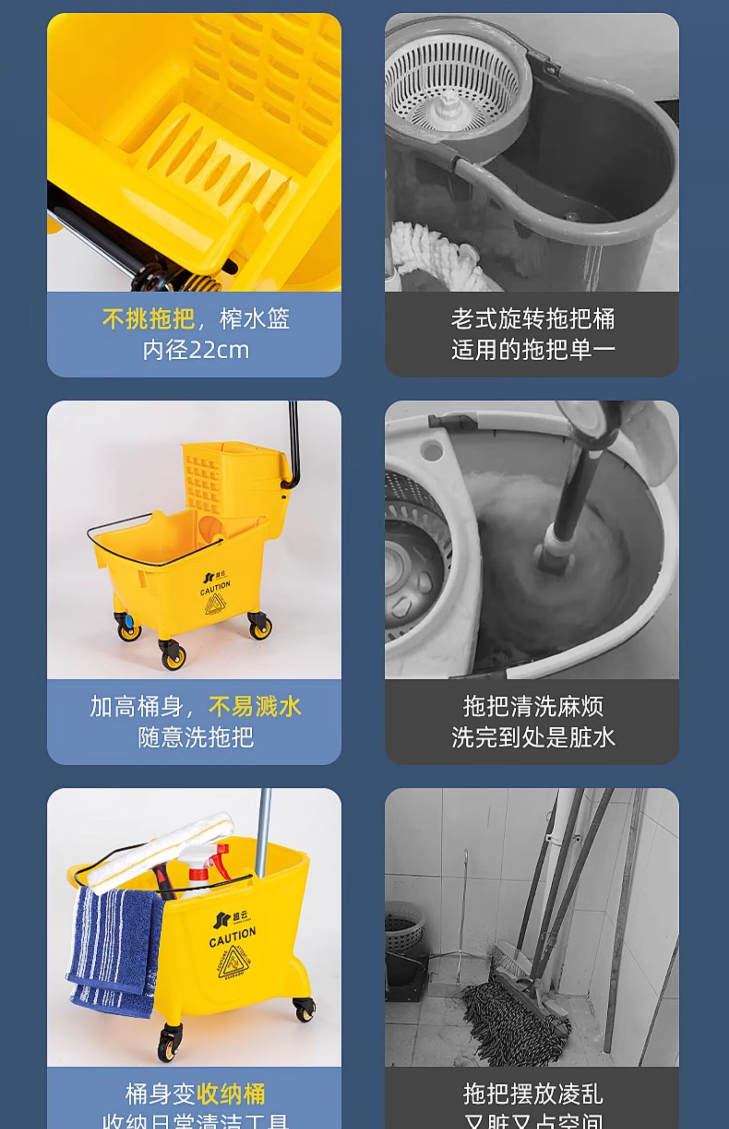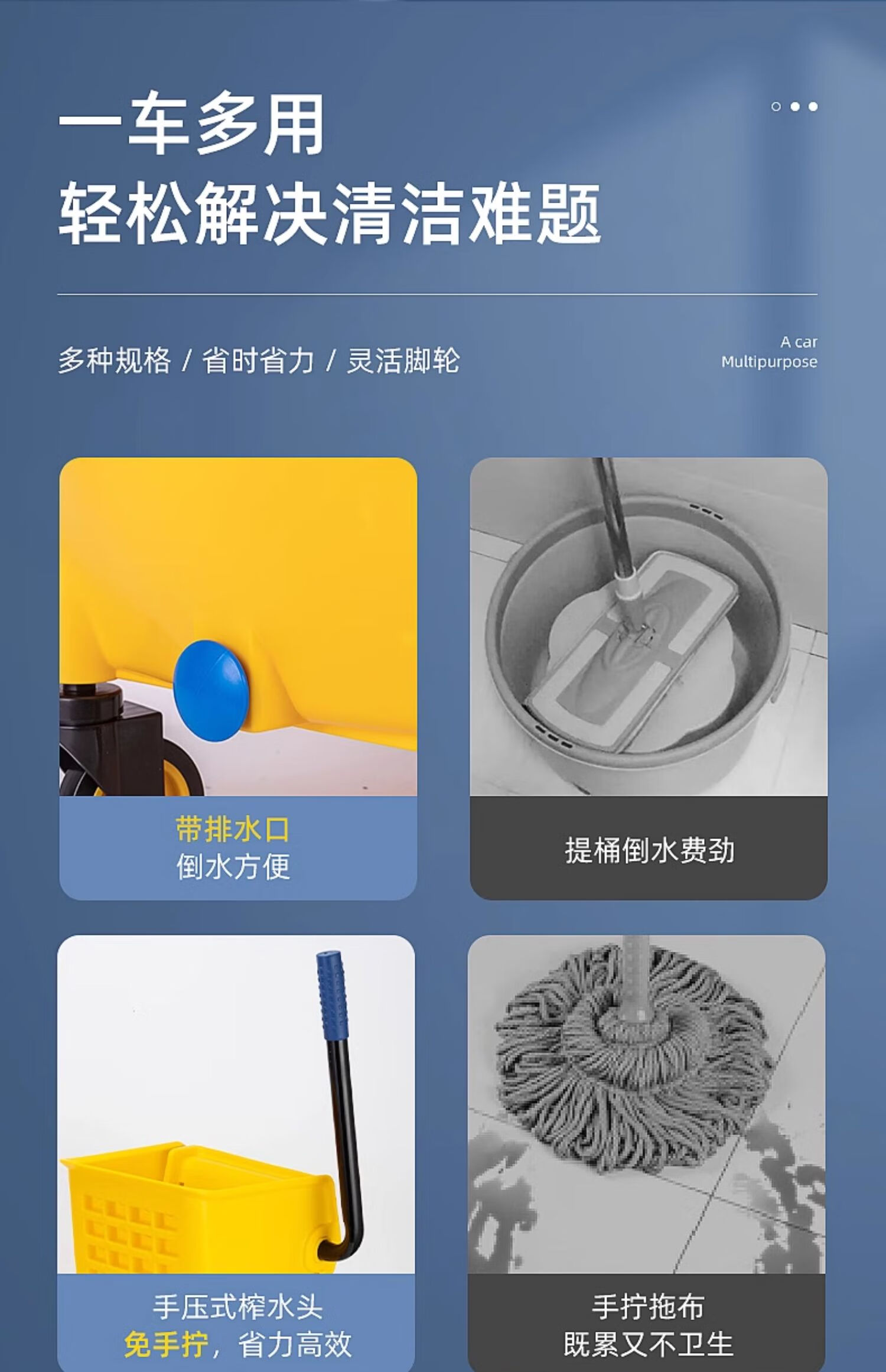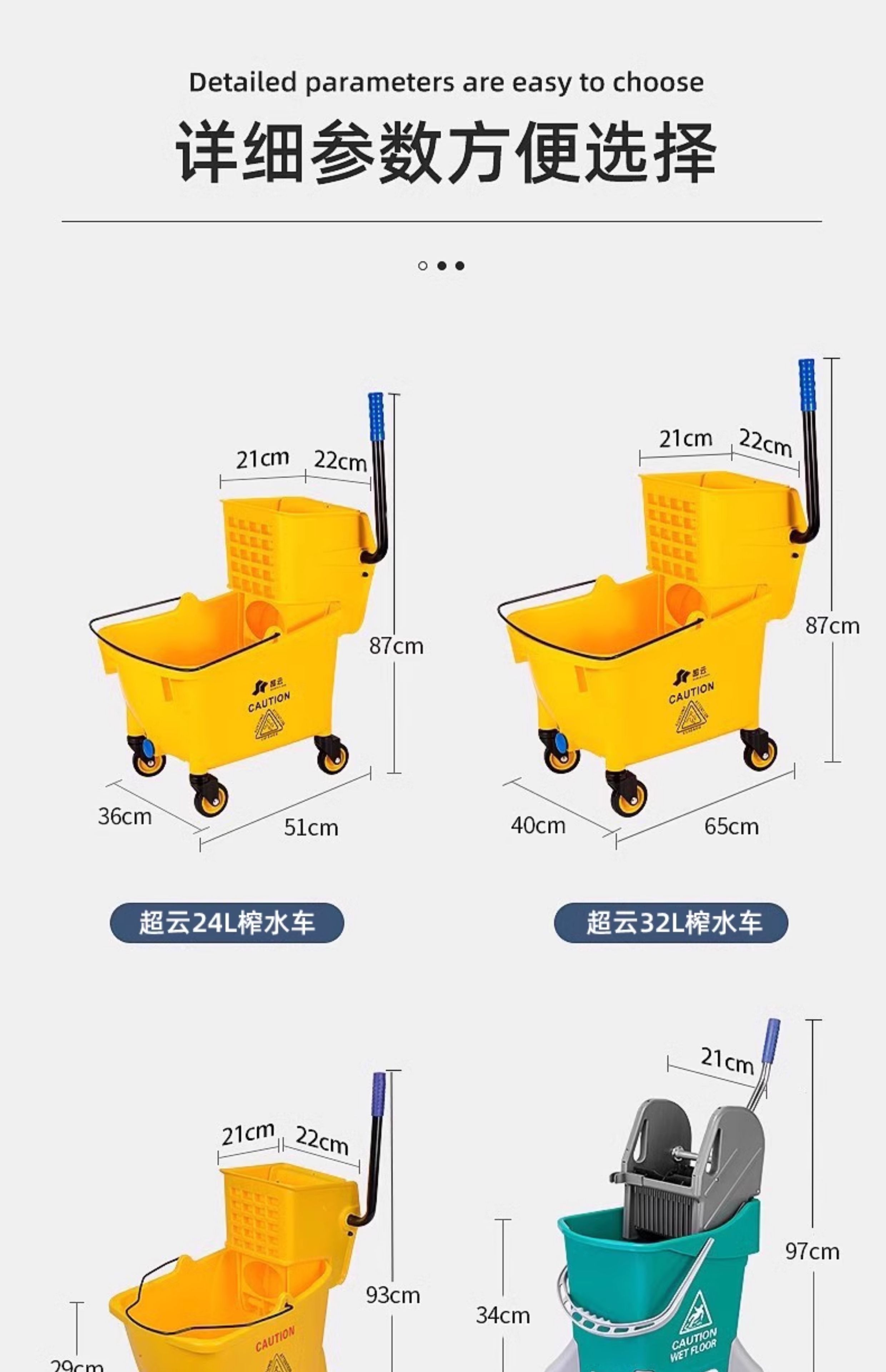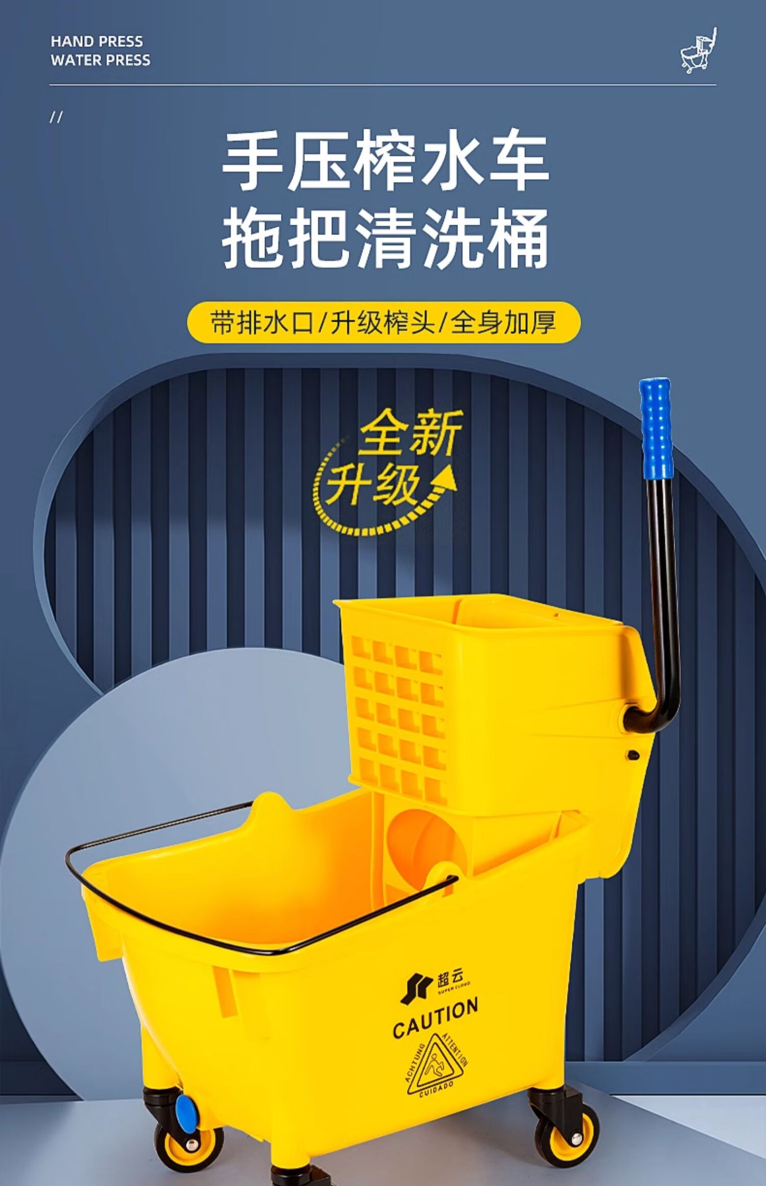 Mop floor mop bucket Baiyun water press truck mop bucket floor mop bucket commercial hotel washing mop special integrated mop bucket Chaoyun 32L water press truck upgraded with drain port