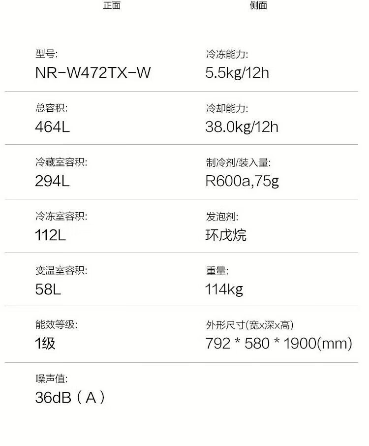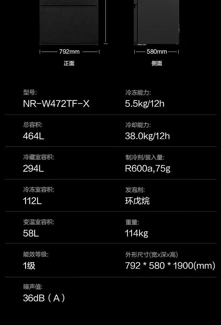 Panasonic NRW472BFX zero-embedded multi-door rock slab wide-width variable temperature intelligent humidity control automatic ice-making refrigerator Panasonic NR-W472BF-X zero-embedded multi-door rock slab