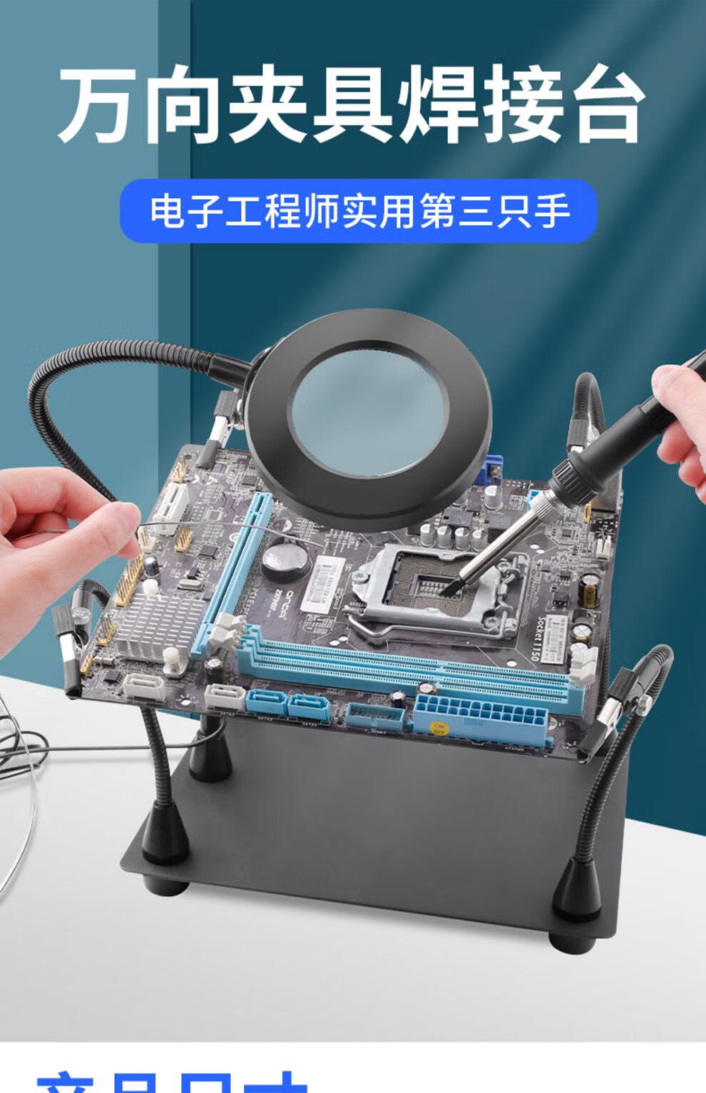 Circuit board welding workbench, four-claw soldering station fixing fixture, PCB soldering auxiliary tool, universal bracket, additional accessories, additional magnetic claw arm*1, 3-claw splint