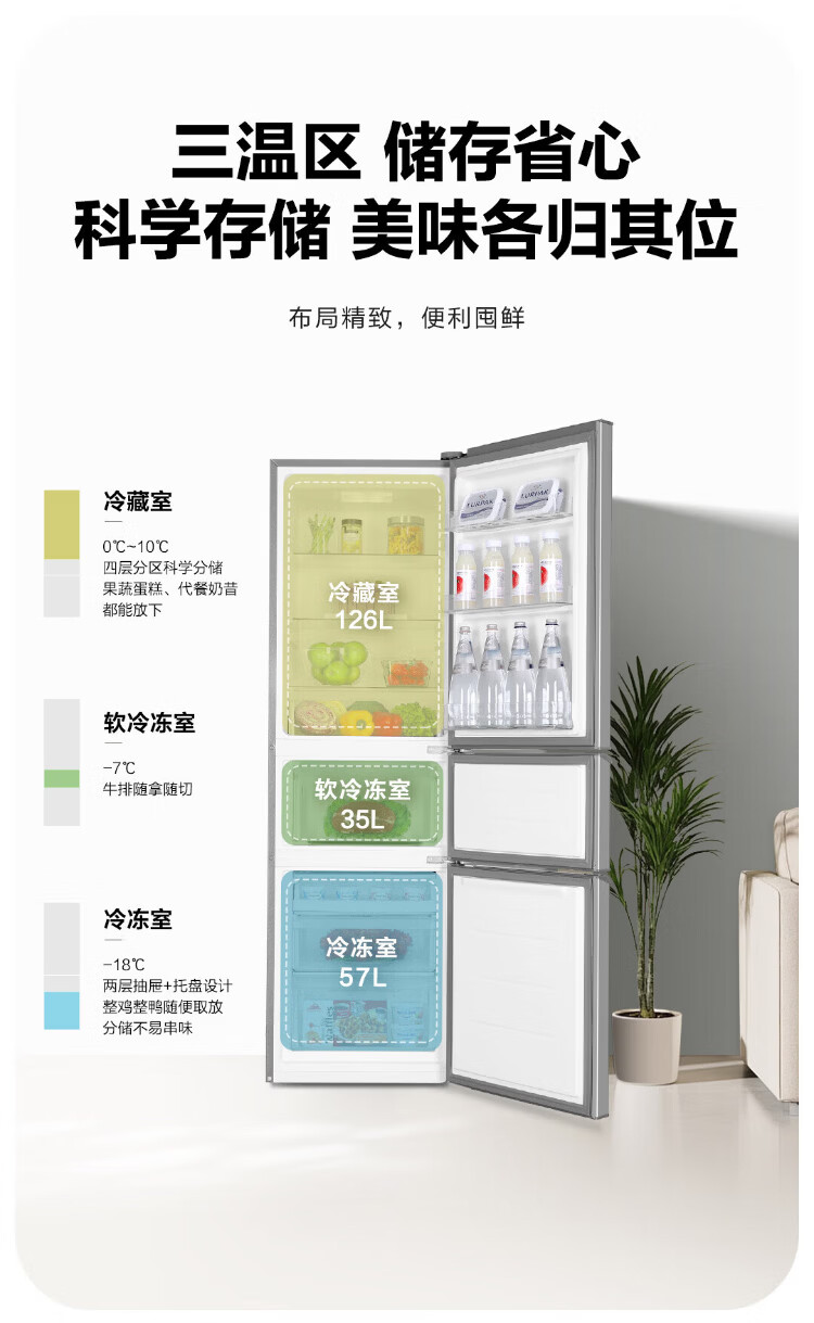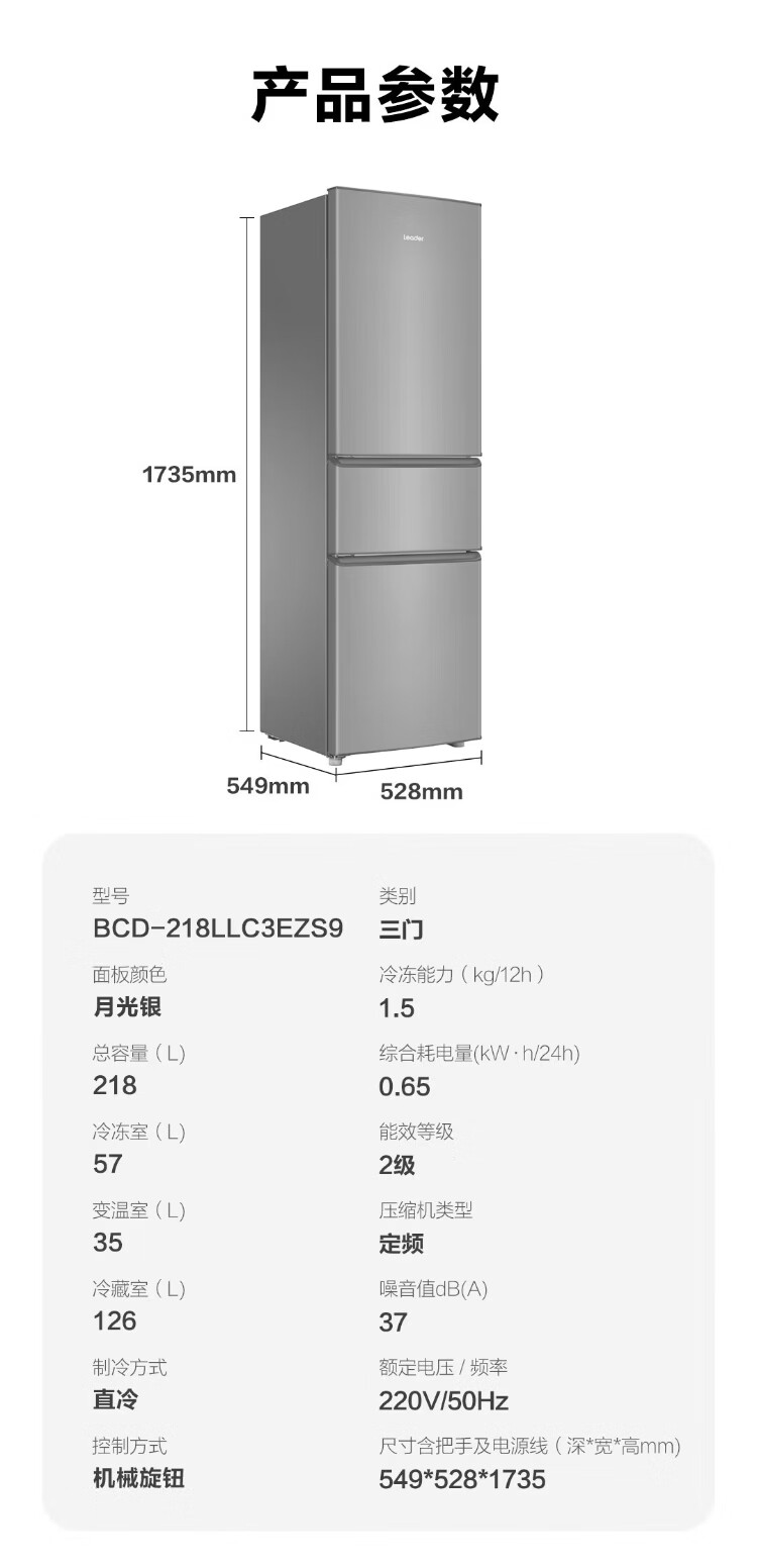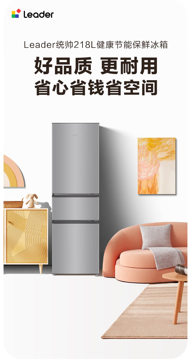 Haier produces refrigerator 218 liters three-door energy-saving low-noise rental household large-capacity refrigerator three-door Tongshuai mid-door soft-freezing small energy-saving deep-freezing quick-freezing refrigerator Haier Smart Home 218 liters three-door smart refrigerator