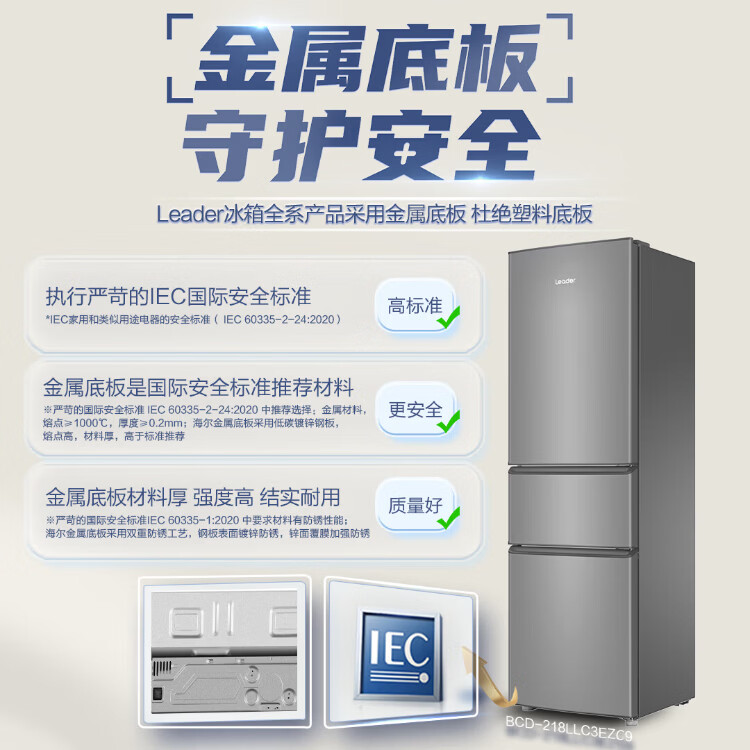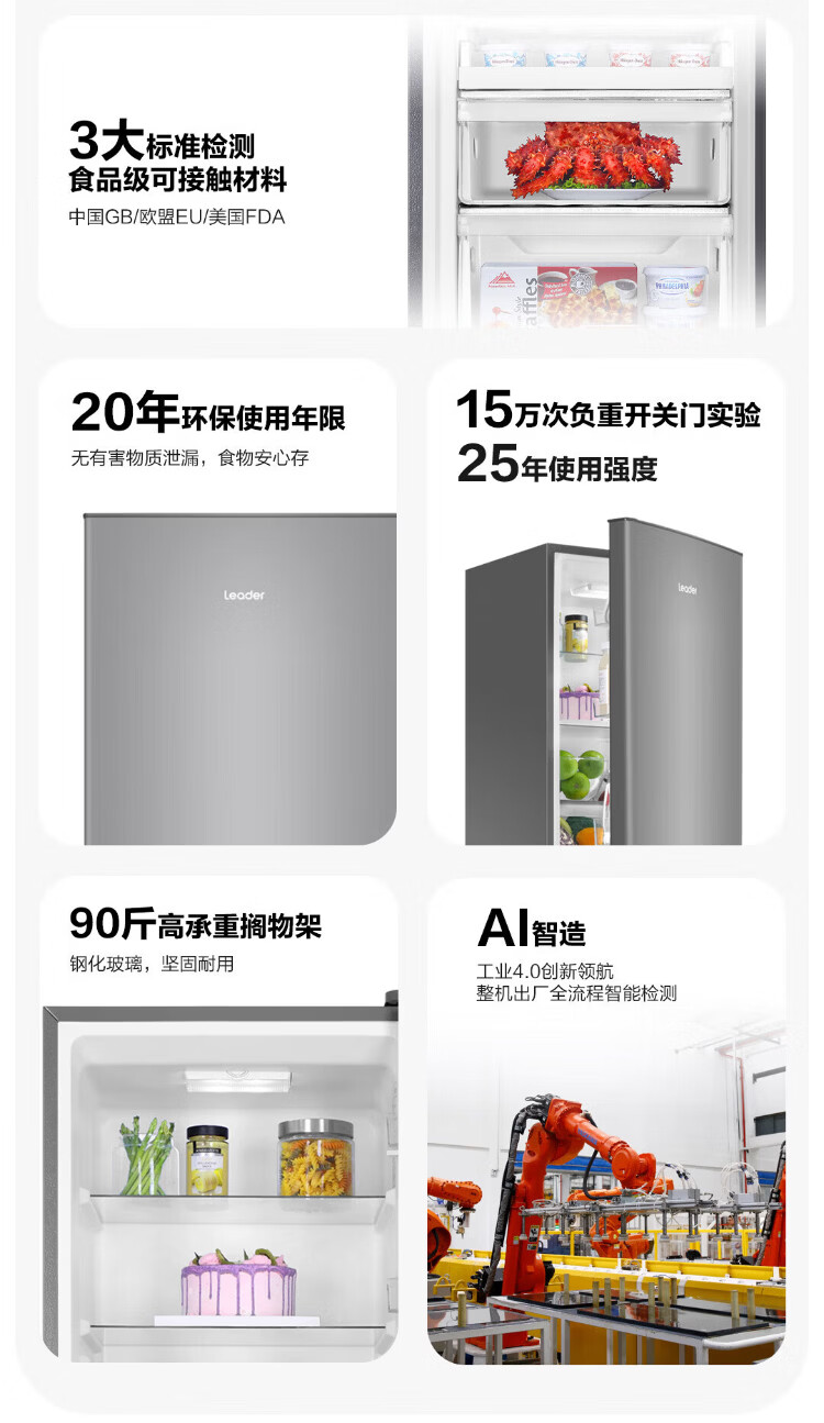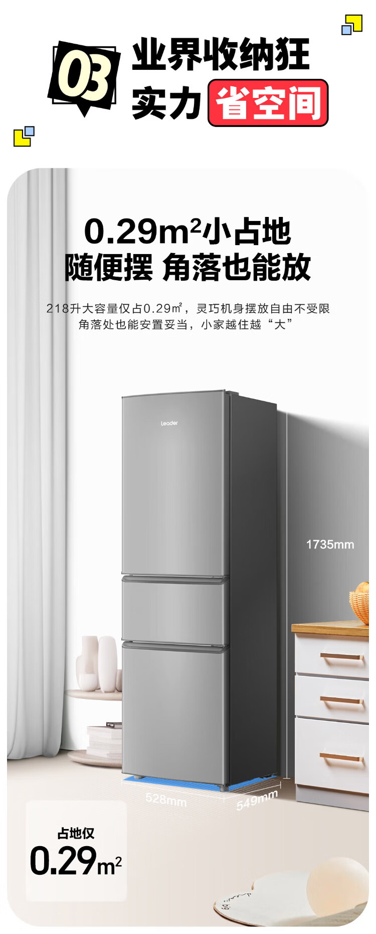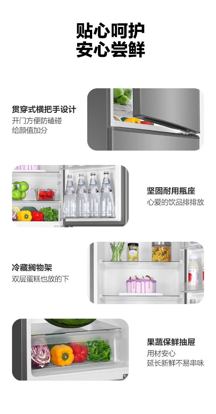 Haier produces refrigerator 218 liters three-door energy-saving low-noise rental household large-capacity refrigerator three-door Tongshuai mid-door soft-freezing small energy-saving deep-freezing quick-freezing refrigerator Haier Smart Home 218 liters three-door smart refrigerator