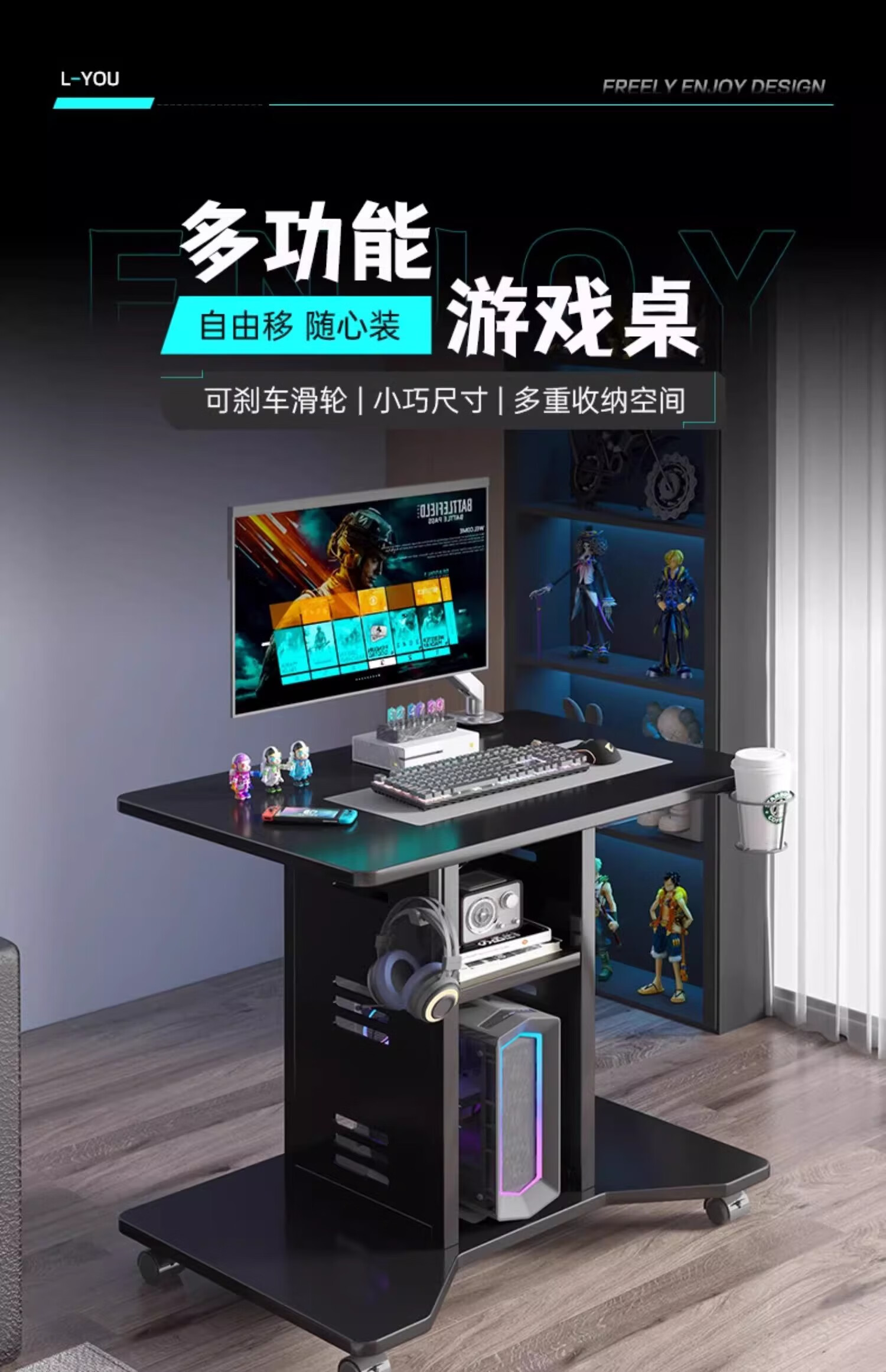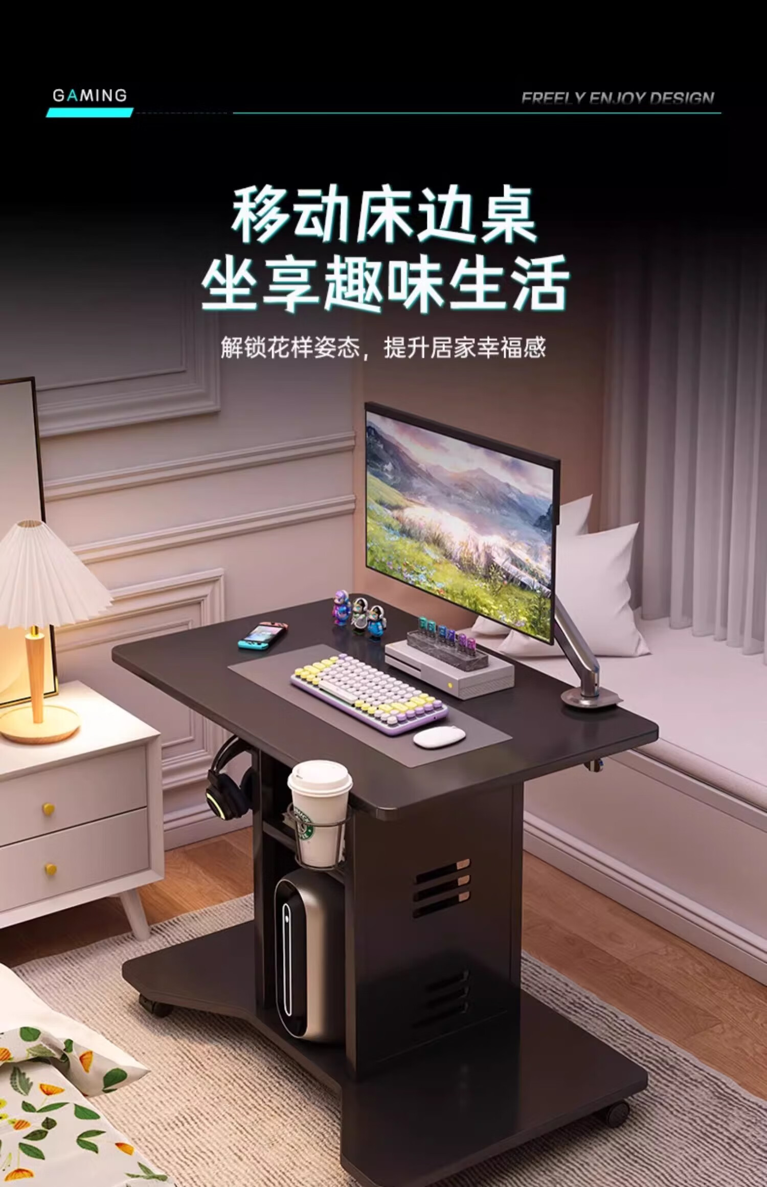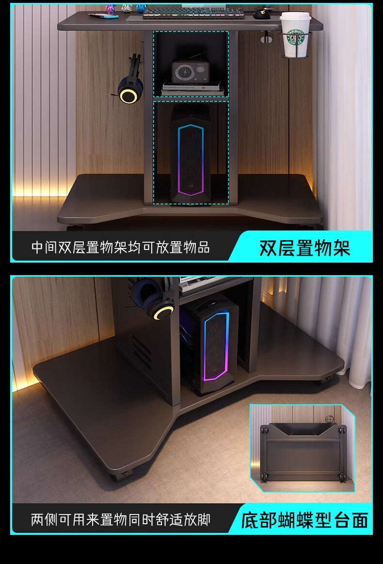 Zuoyin solid wood desktop computer desk notebook e-sports table small movable small table dormitory home bedroom bedside table Jingcang straight hair obsidian black 80*60*75cm
