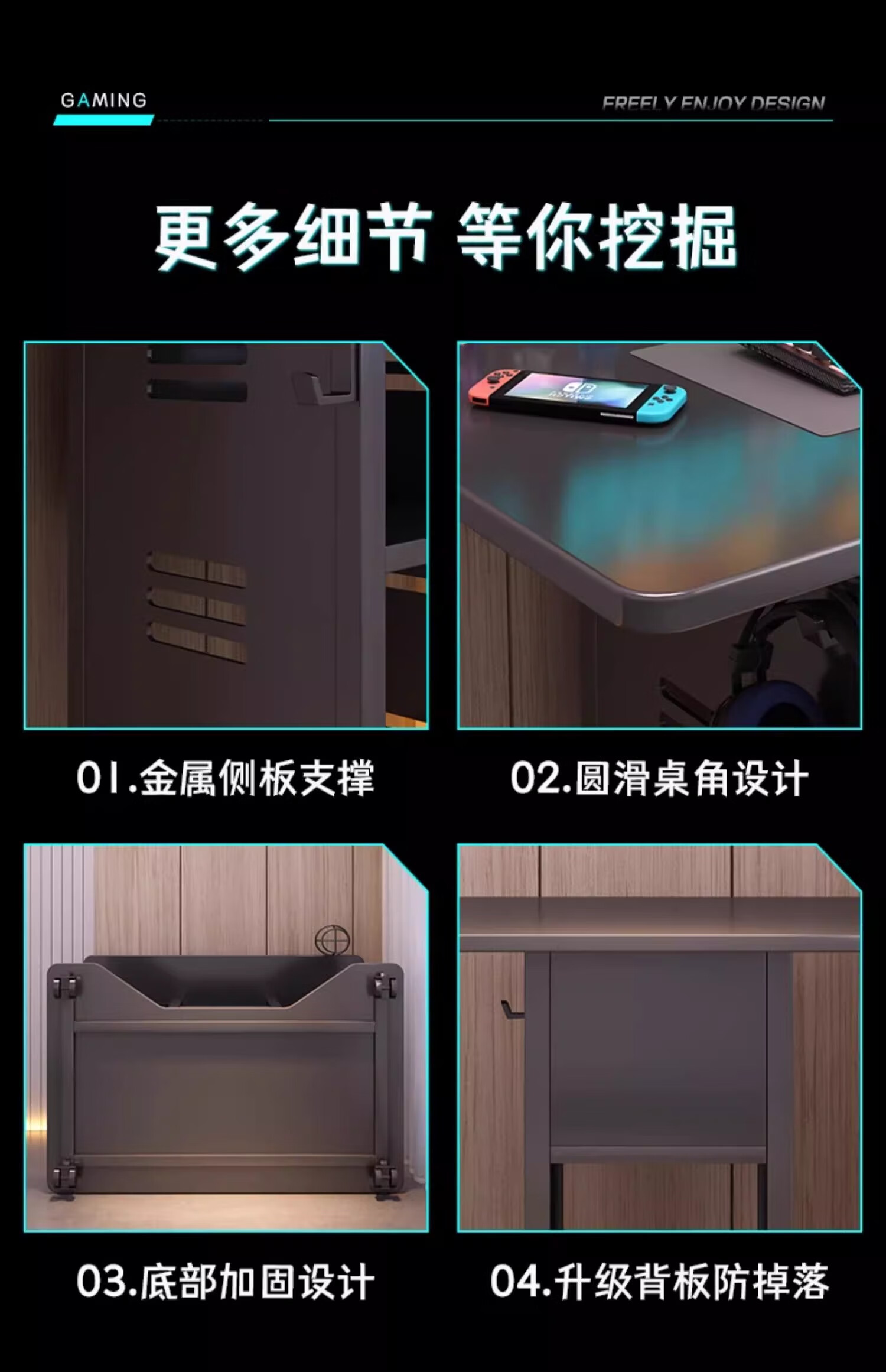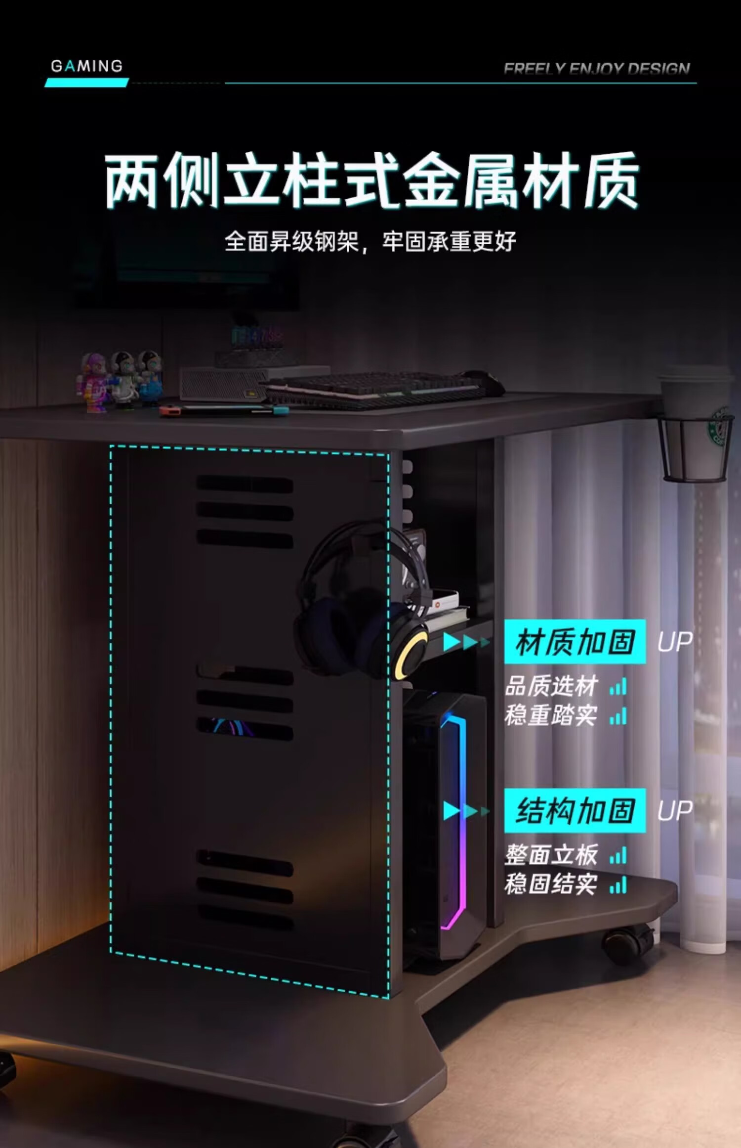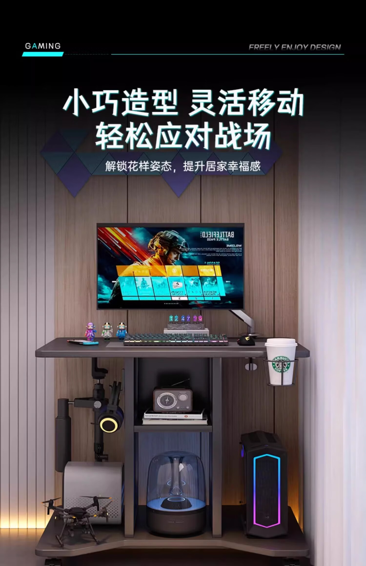 Zuoyin solid wood desktop computer desk notebook e-sports table small movable small table dormitory home bedroom bedside table Jingcang straight hair obsidian black 80*60*75cm