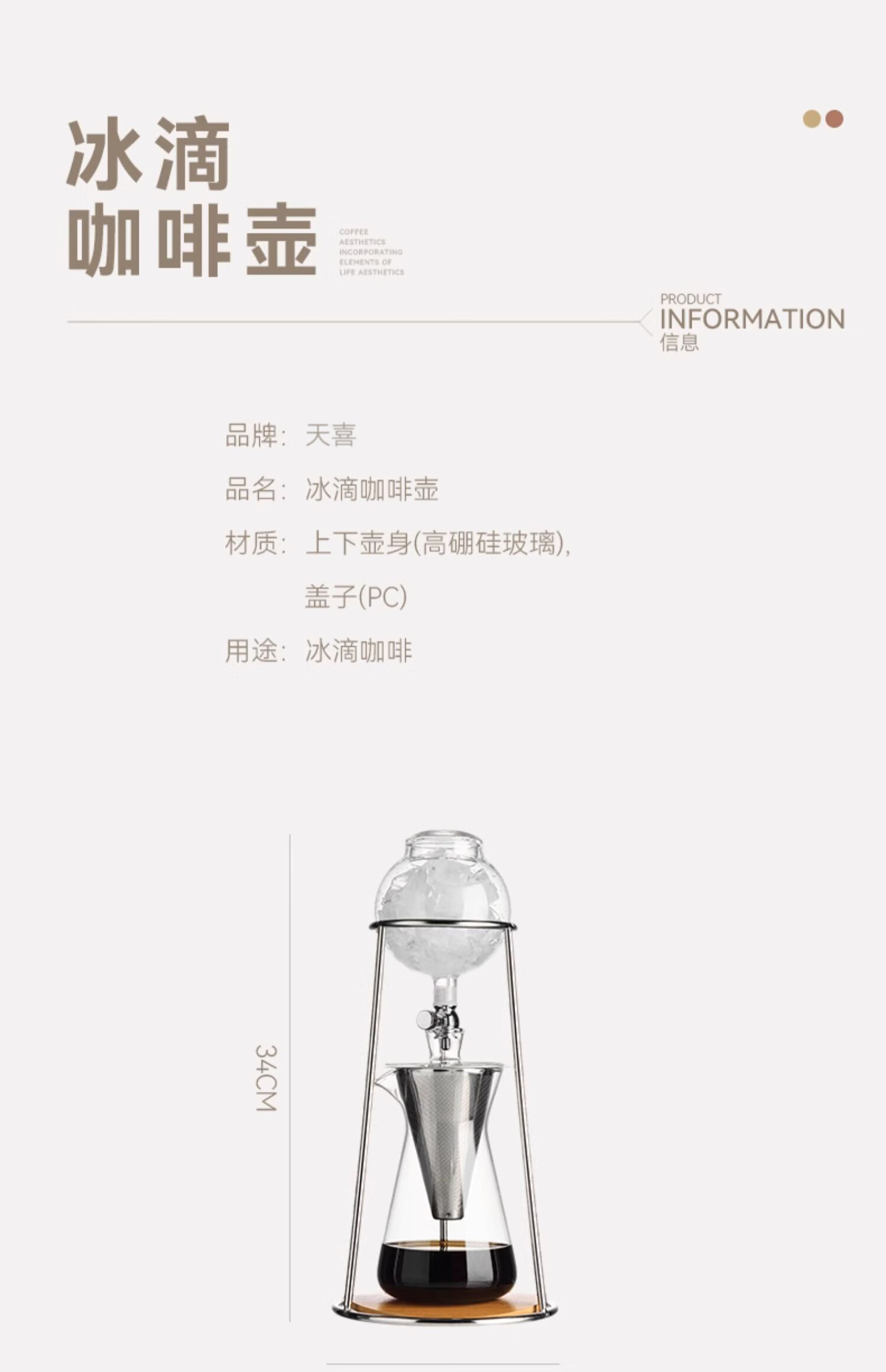 Tianxi (TIANXI) cold brew coffee pot household large-capacity hand brewing pot set drip filter sharing ice drip pot ice drip cold brew coffee pot