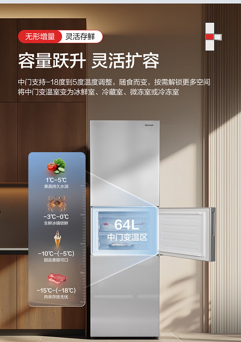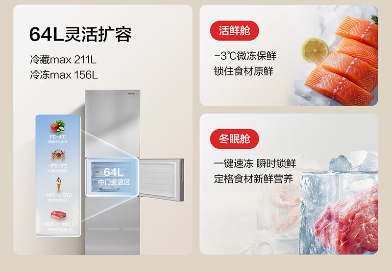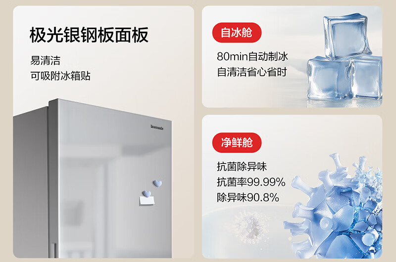 Panasonic's new three-door refrigerator 303 liters, first-class energy efficiency, silver ion antibacterial, automatic ice making -3, micro-freezing and preservation, home refrigerator, Aurora Silver NR-30CAGEC-S