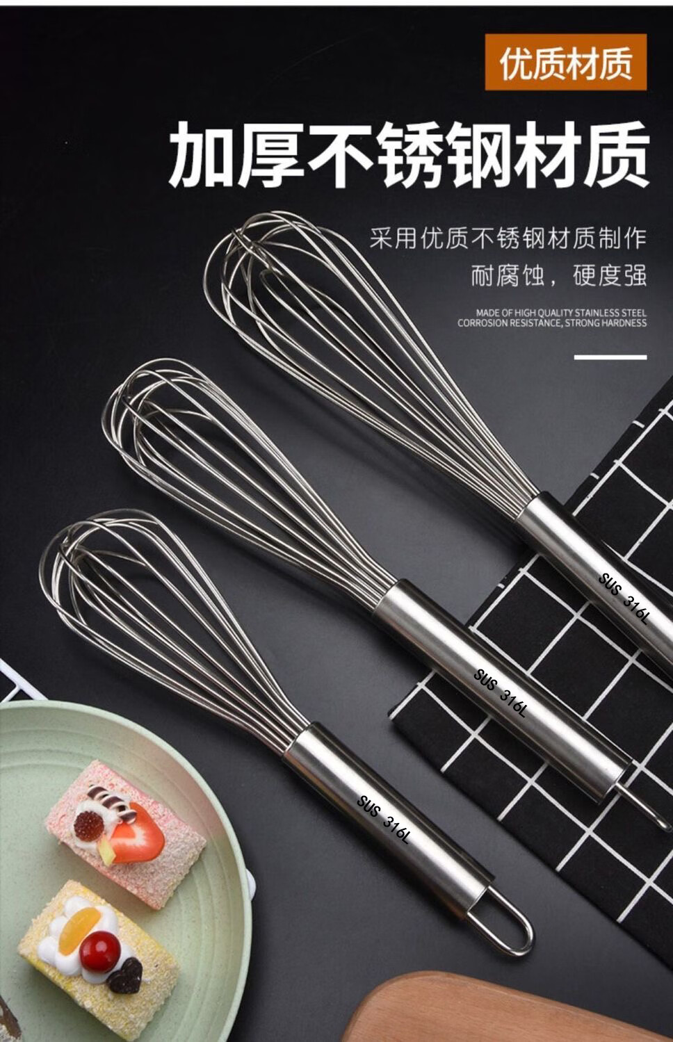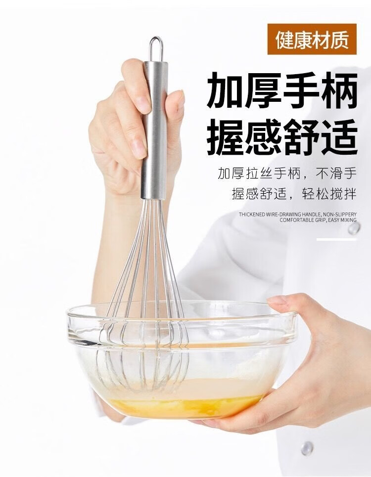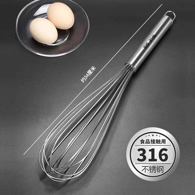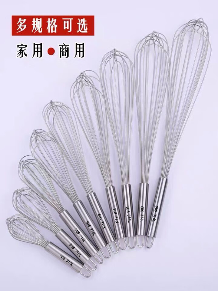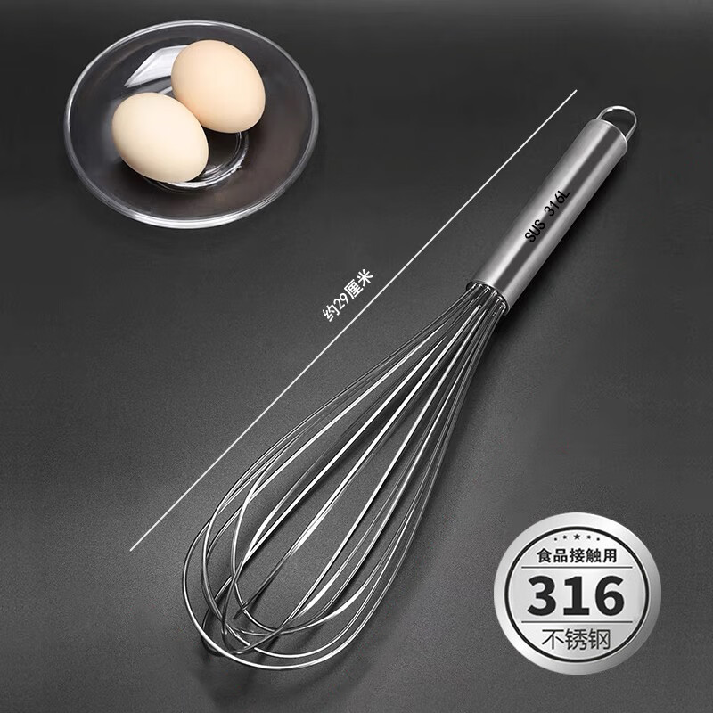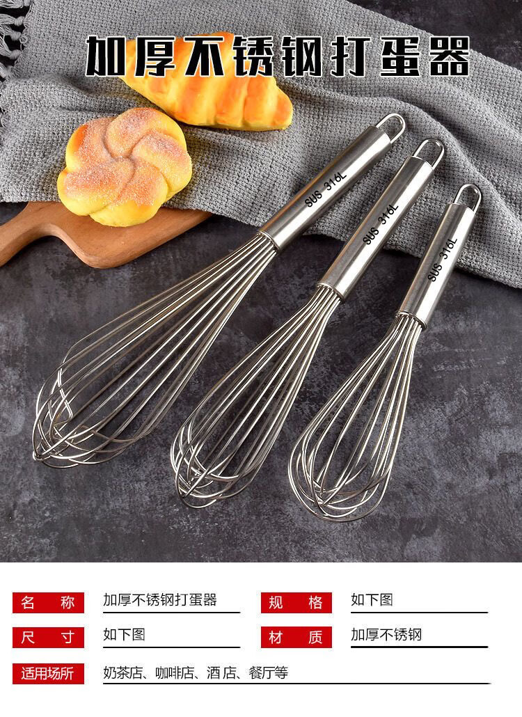 An Junsheng 316 food stainless steel egg beater manual thickened mixing rod and flour egg whisk extended baking commercial 316 stainless steel wire with logo - recommended extra thick 8 inches head 9 cm + handle 13 cm