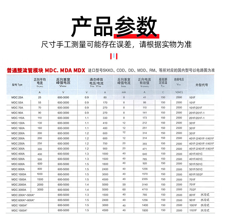 Yuechangshan power rectifier diode MDC500A-16 hot selling 600A-2000V 1000A ordinary rectifier MDC300A-16