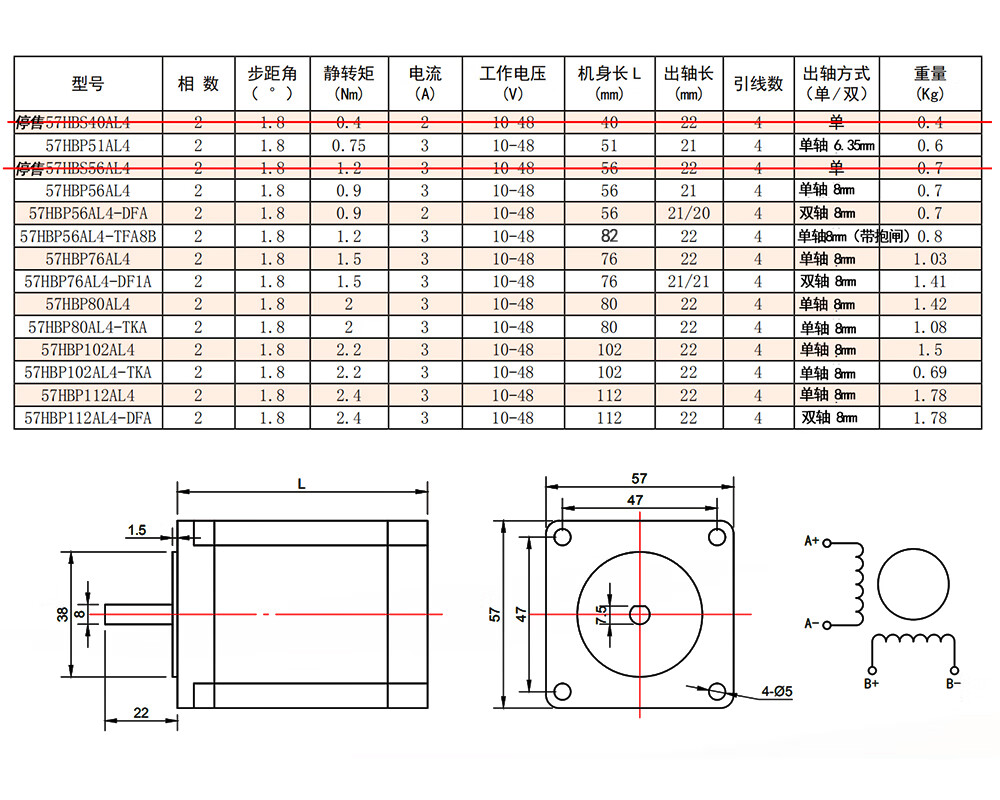 Yue Changsheng 57 stepper motor small series single and double axis can be added with brake, low speed and high torque, superior in the era 57HBP56AL4 (single axis)