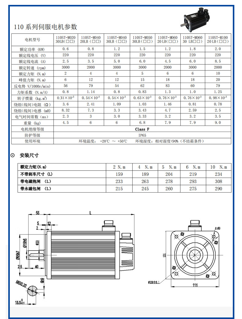 Yue Changsheng servo motor set electric motor 220v80130 AC era superior 2000w driver XBM 110/1.2KW/2000 rpm 6 Nm horizontal movement (without brake) 5V applicable control