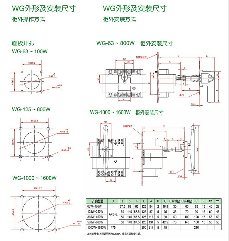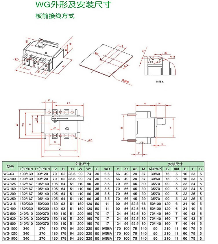 WG -630//4P load isolation switch 630A 500A front panel wiring 3P 400A