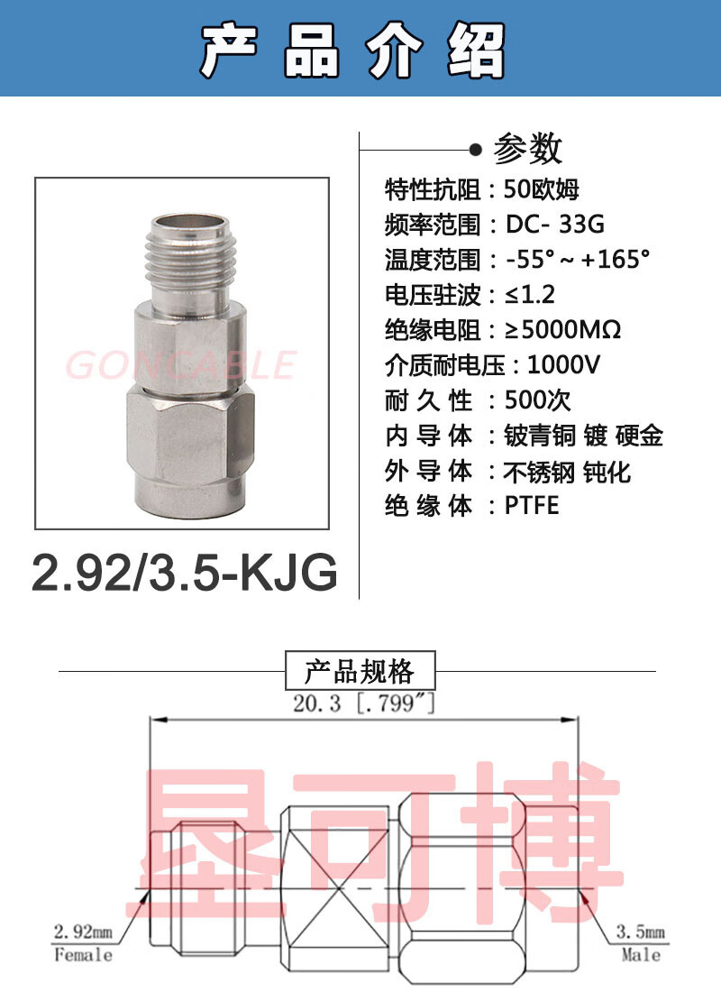 Port Emperor RF connector 2.92/3.5-JJG-JKG-KJG-KKG stainless steel 2.92 male/female to 3.5 male 2.92/3.5-JJG