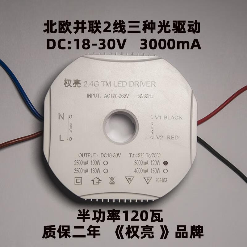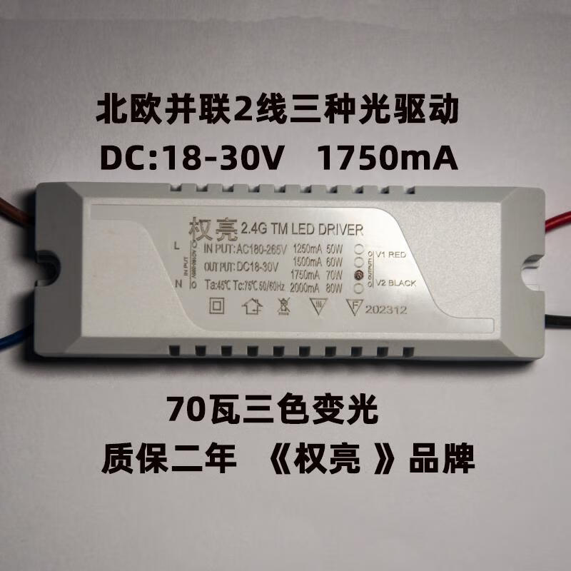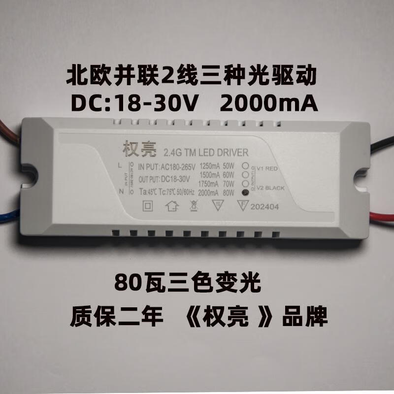 LED chandelier ballast controller low voltage isolation two-color 24v parallel drive two-wire three-color living room and bedroom power supply 2-wire square shell 1250 mA 18-30V1204124mm