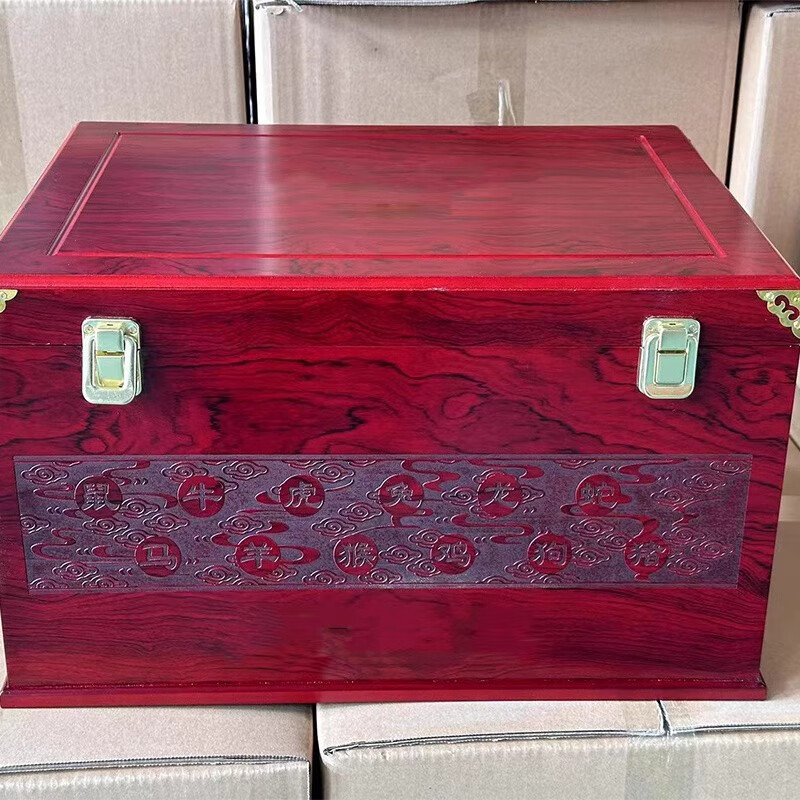 ZHIO Maoxing Town Twelve Zodiac Collection Wooden Box Feitian Wine Special Box 12 Liquor Wooden Box Gift Box Sealed Wine Packaging Box 12 Zodiac Retro Color