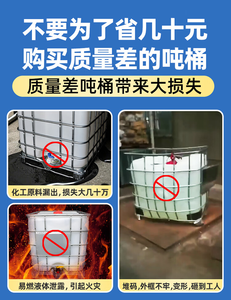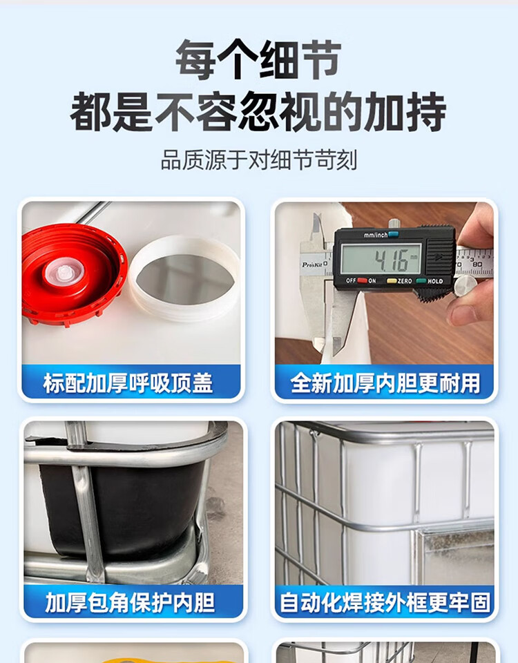 Ton barrel new thickened plastic square barrel 1000L 1 ton ibc container barrel 500 liter chemical barrel water storage barrel diesel barrel new 1000L white (thickened version)
