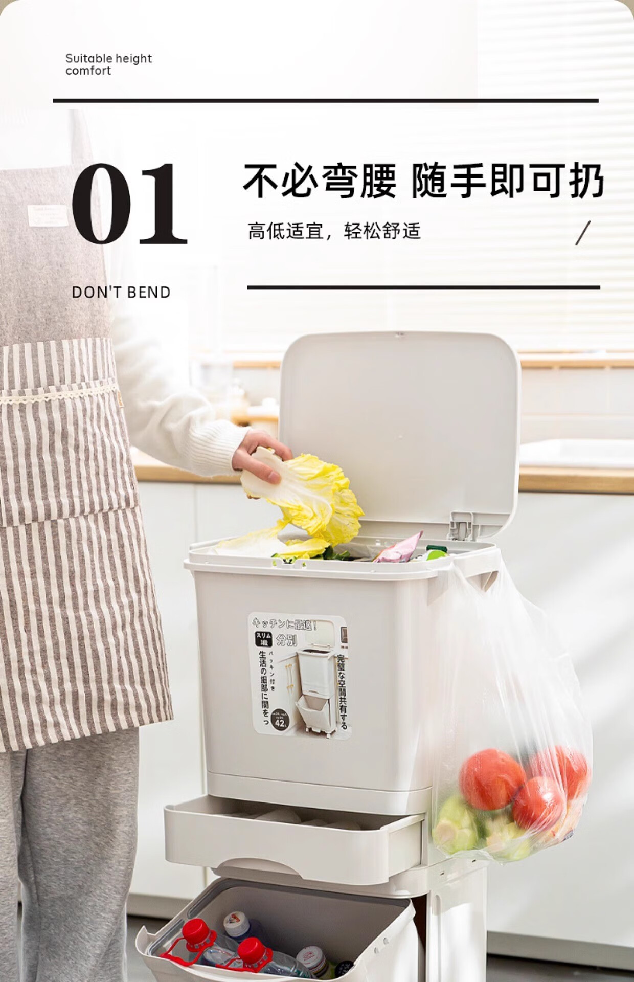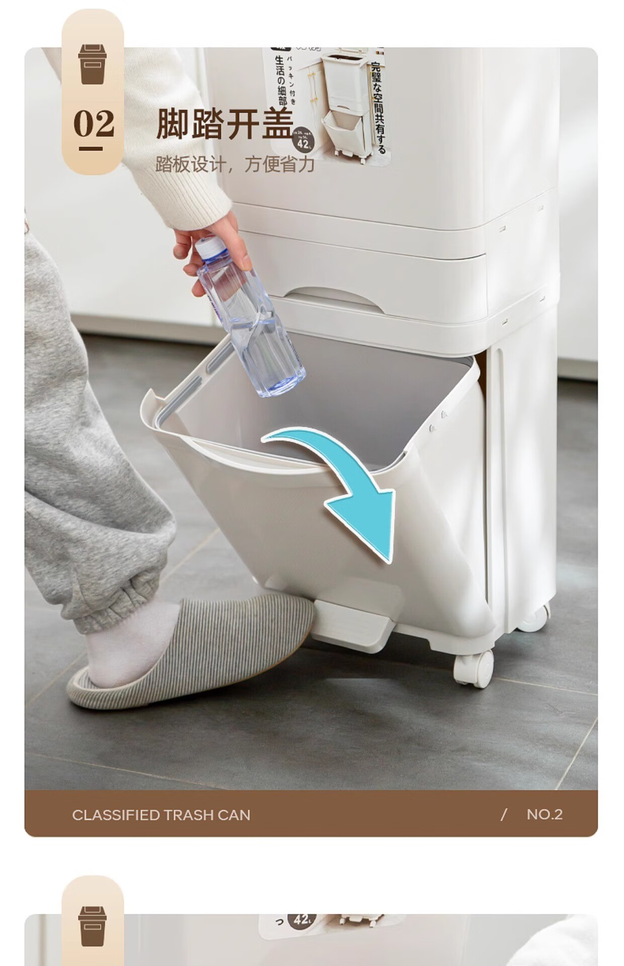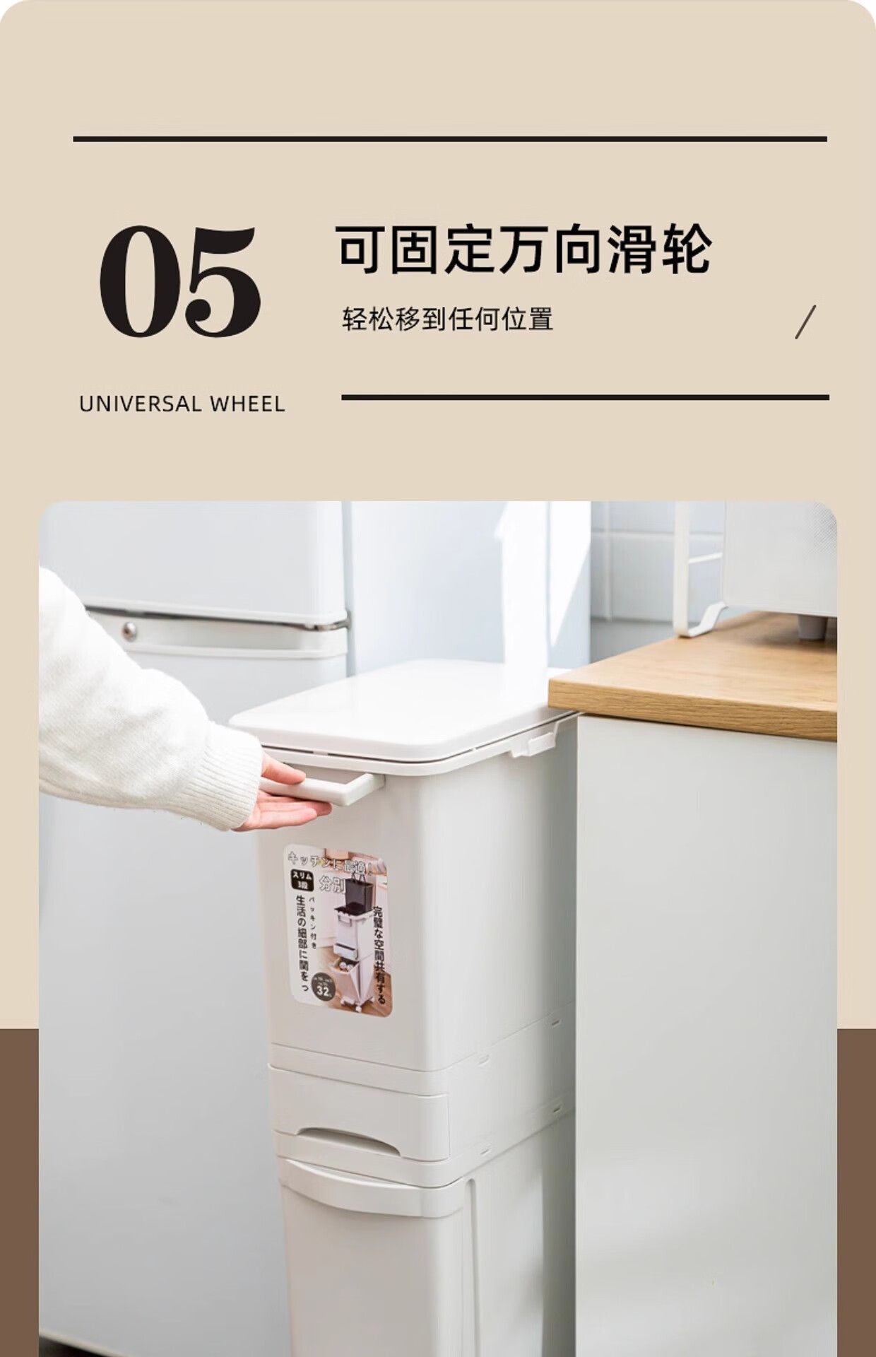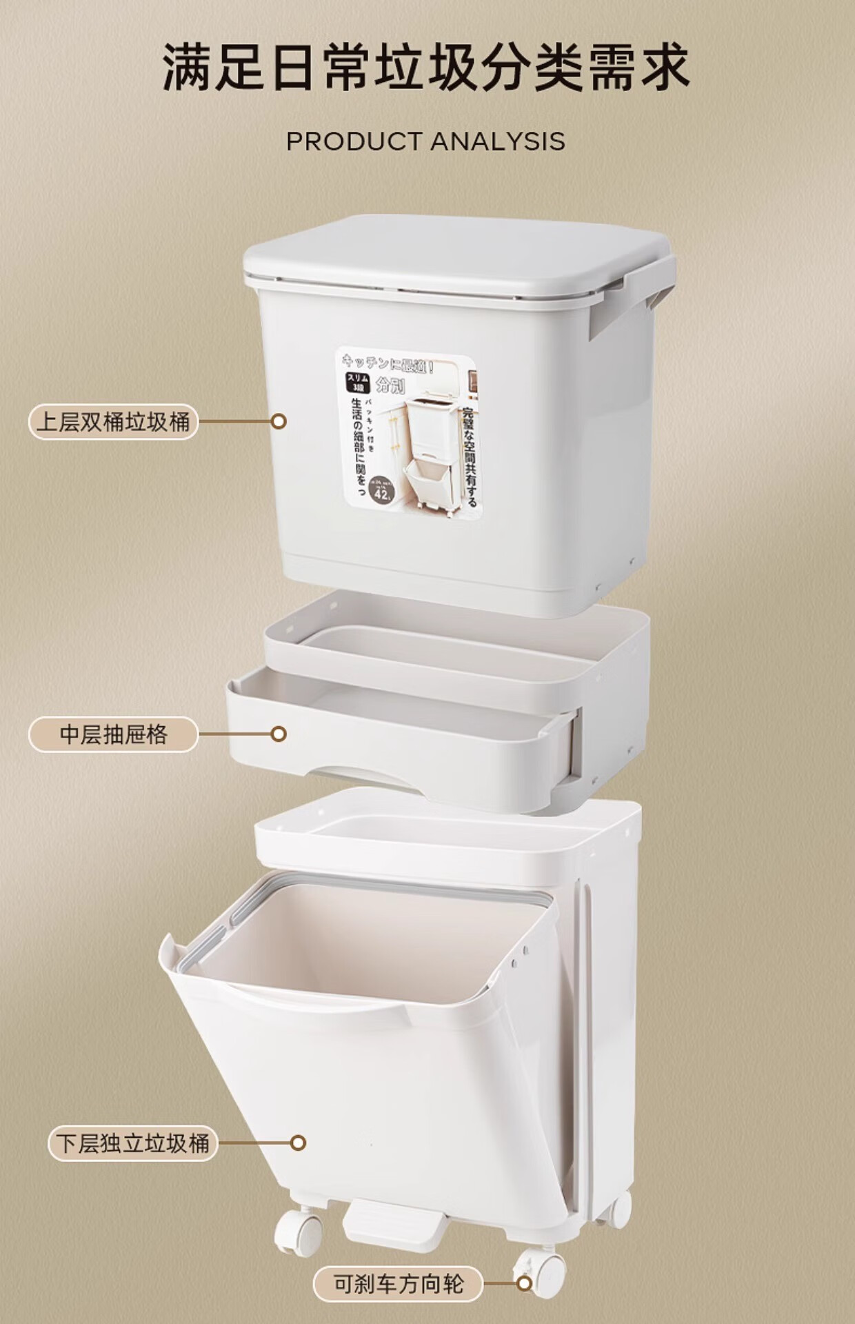 Double three-layer trash can Japanese kitchen classification food waste with lid large large capacity wheel dry and wet separation 38L double 38L double layer single lid manual opening