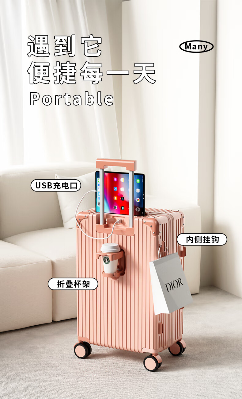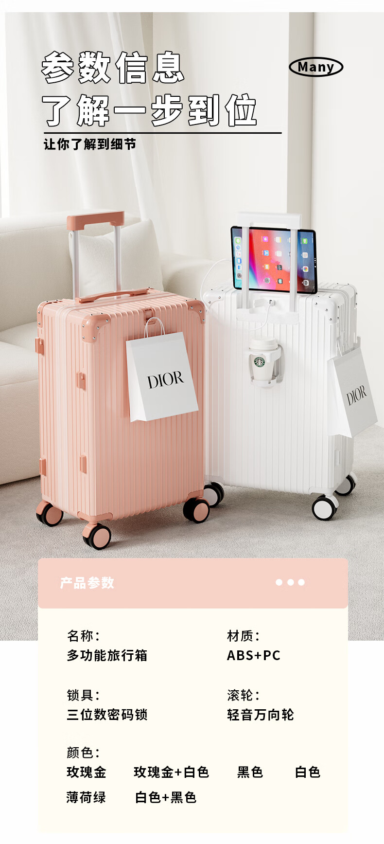 Kamalfi multifunctional suitcase large capacity trolley case men's large suitcase password box girl's large suitcase boarding case black ordinary 607 24 inches