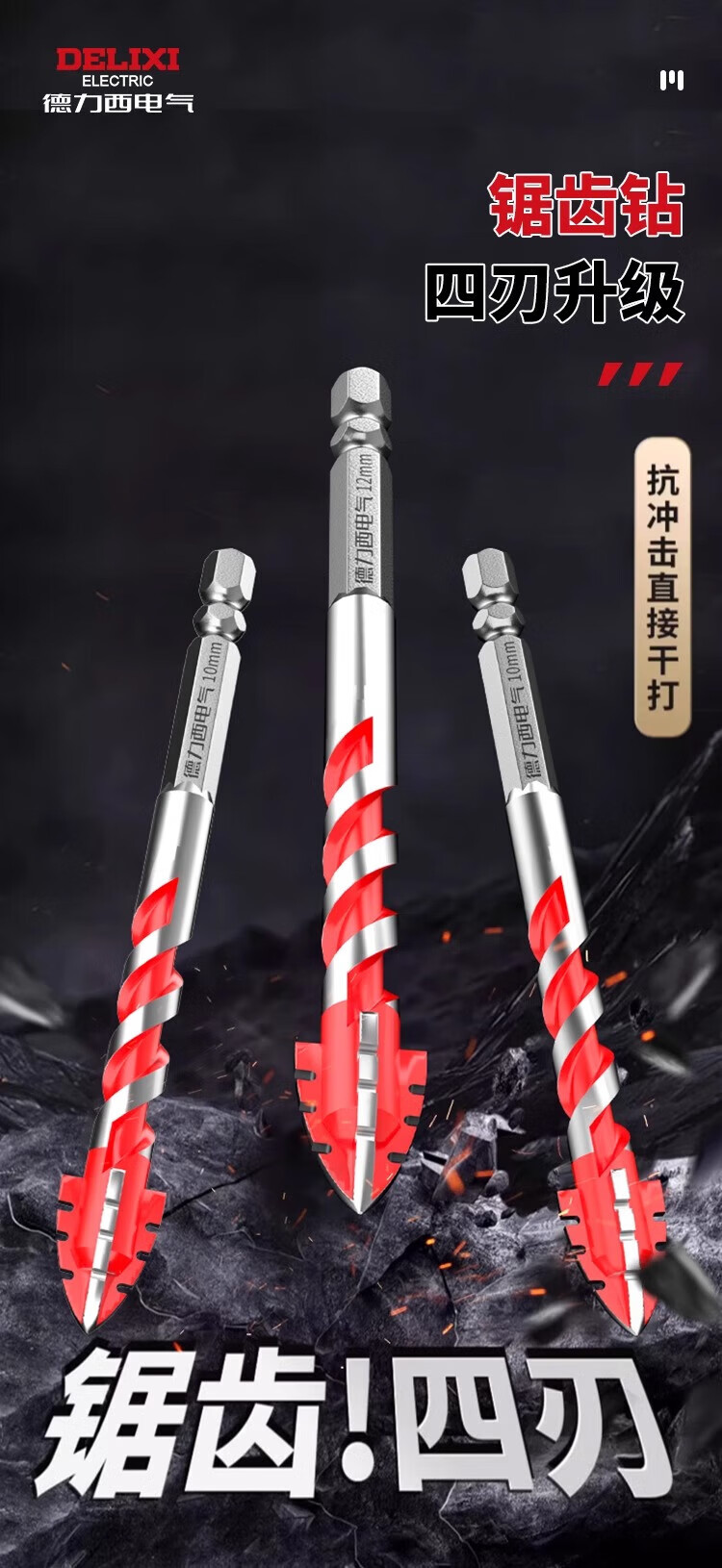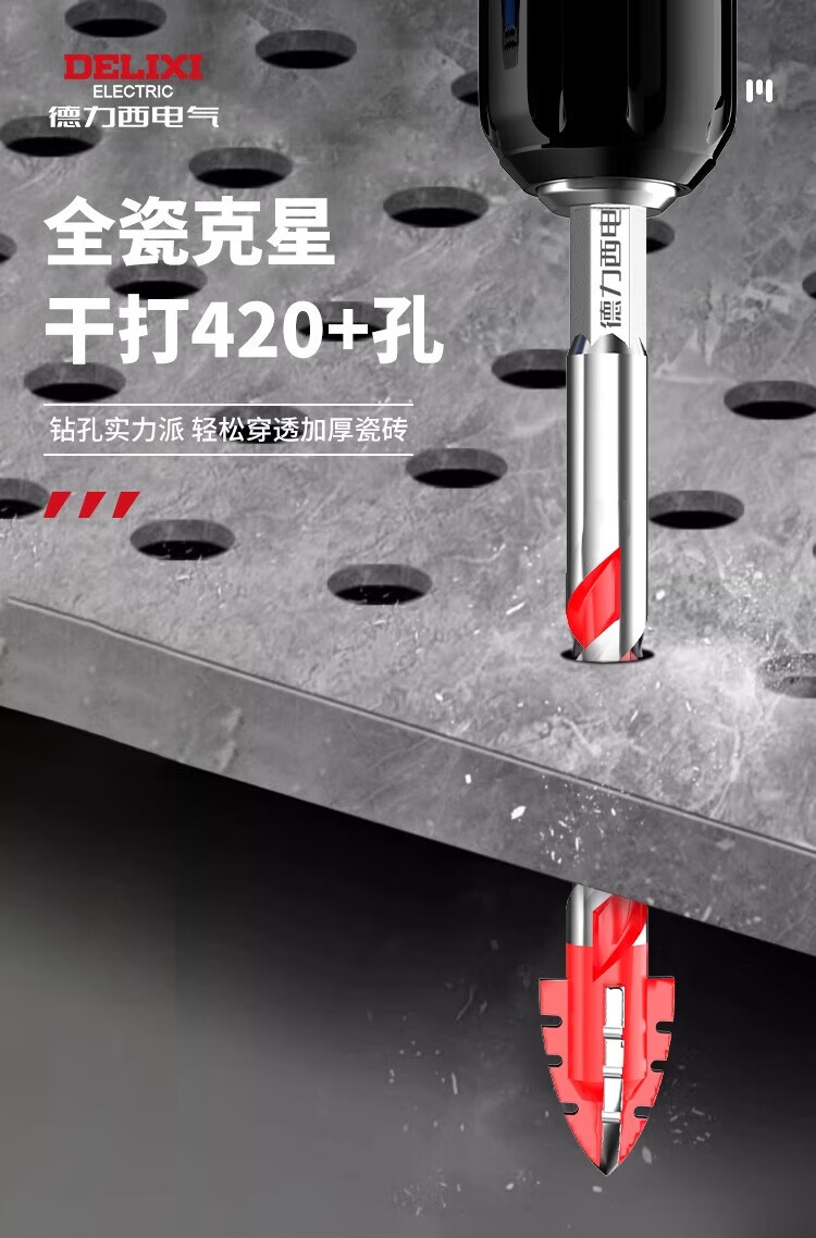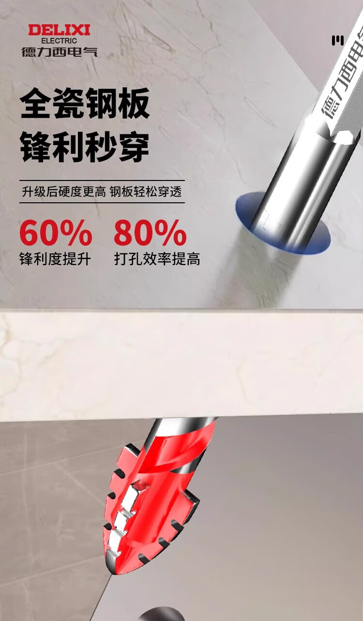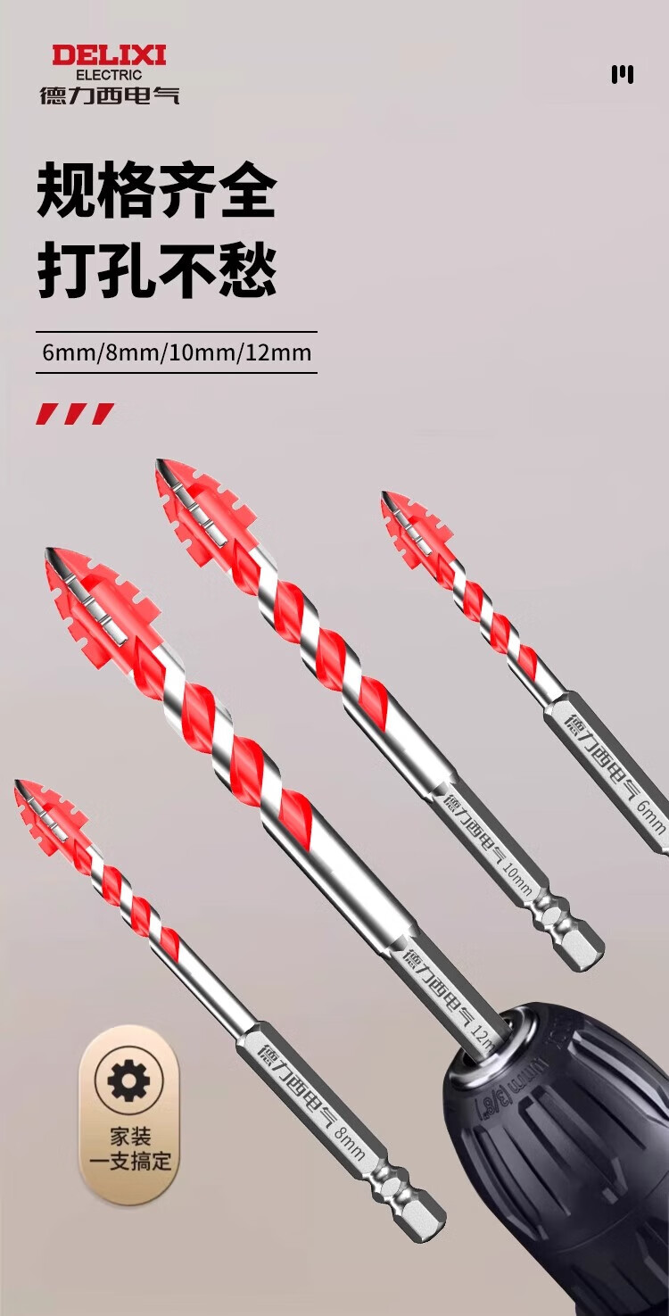 Delixi Electric four-edged sawtooth eccentric drill bit for dry drilling of ceramic tiles, concrete, all-ceramic drilling, impact-resistant, high-hardness and wear-resistant 6mm 2-pack