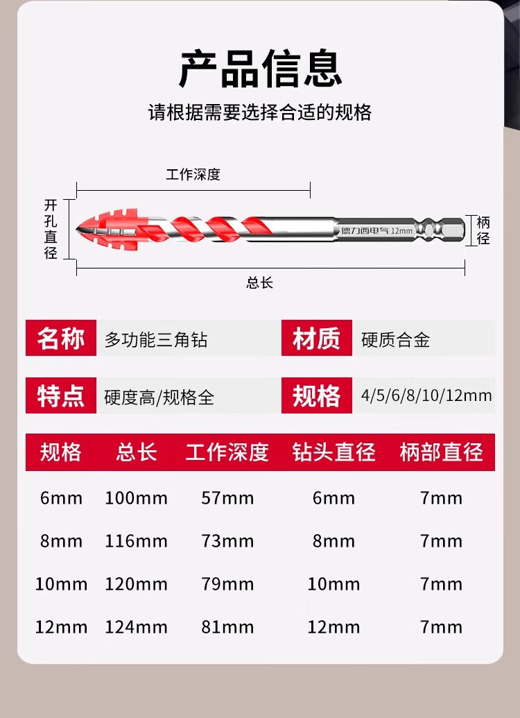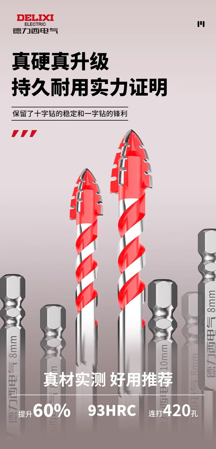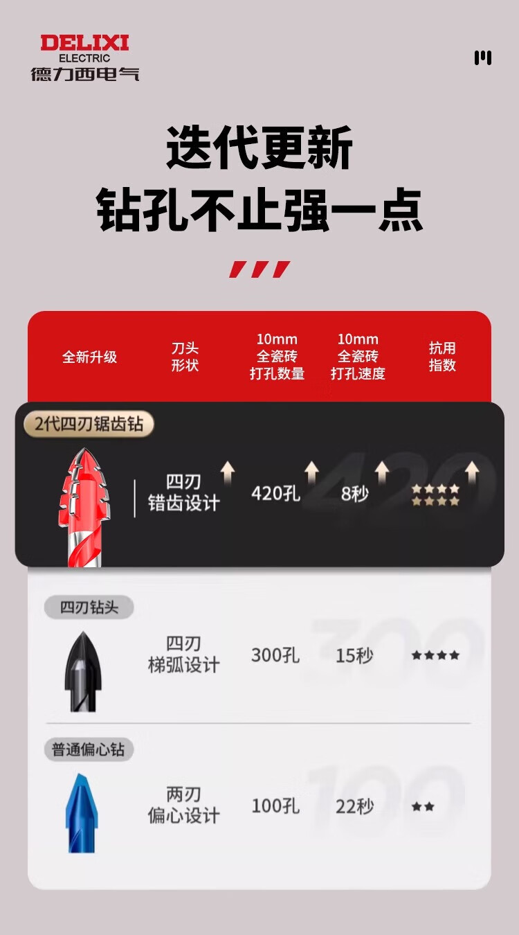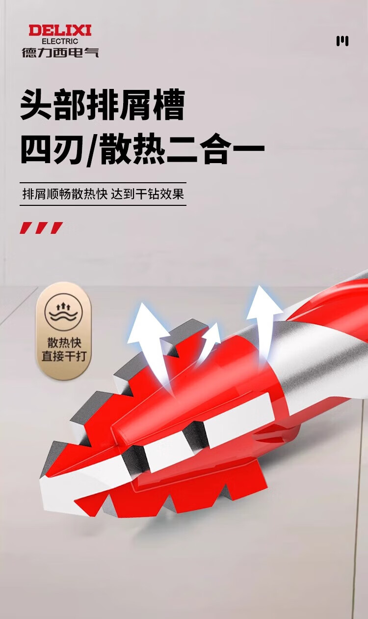 Delixi Electric four-edged sawtooth eccentric drill bit for dry drilling of ceramic tiles, concrete, all-ceramic drilling, impact-resistant, high-hardness and wear-resistant 6mm 2-pack