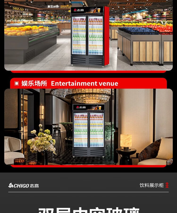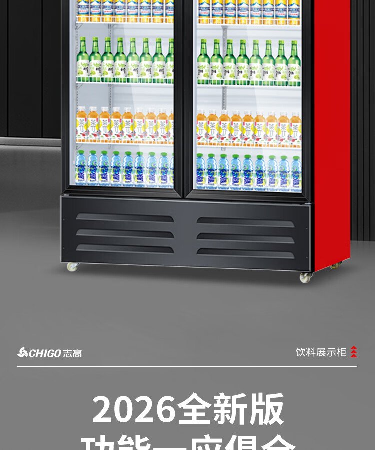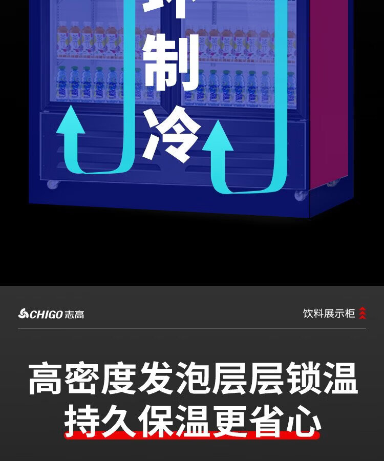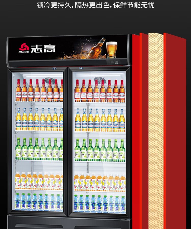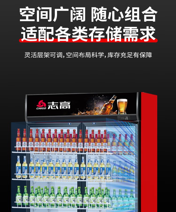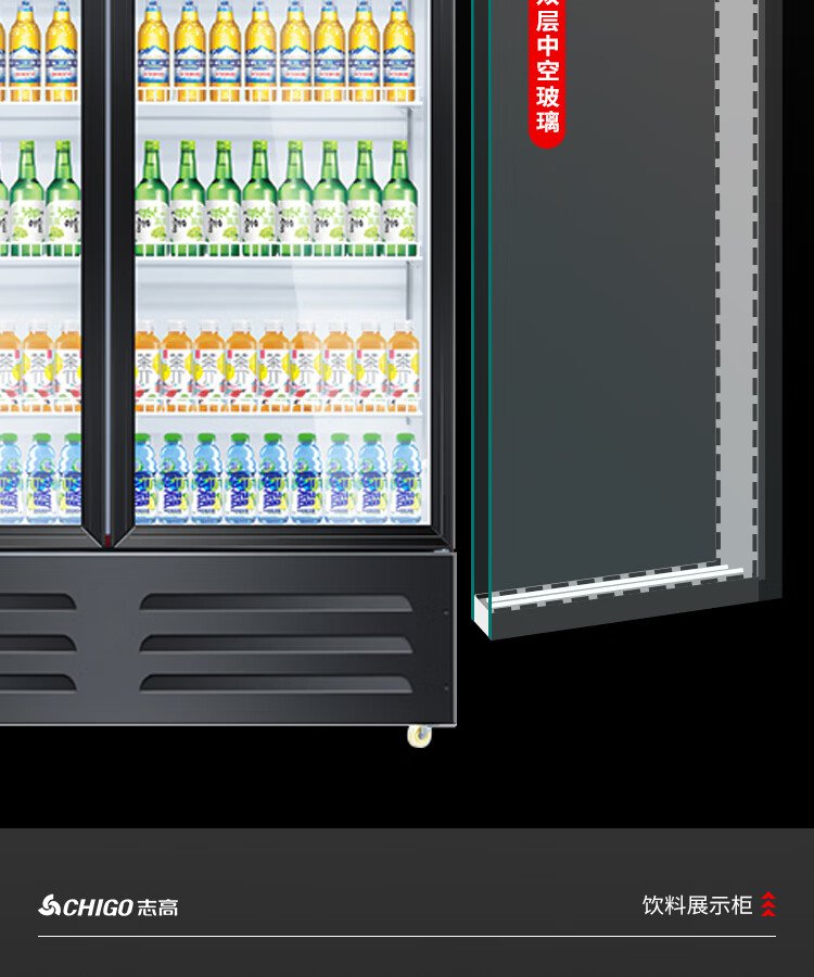 Chigo display cabinet refrigerated large-capacity beverage cabinet freezer commercial fresh-keeping cabinet supermarket glass door refrigerator vertical beer cabinet large three-door lower machine 1000L direct cooling energy saving first-level energy saving 30%