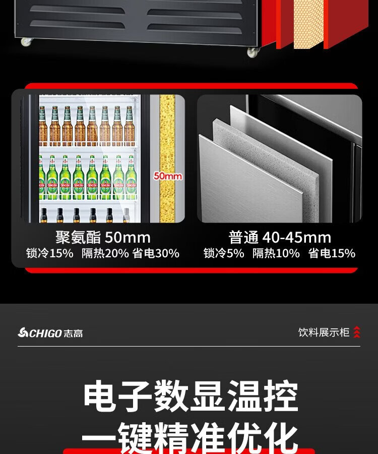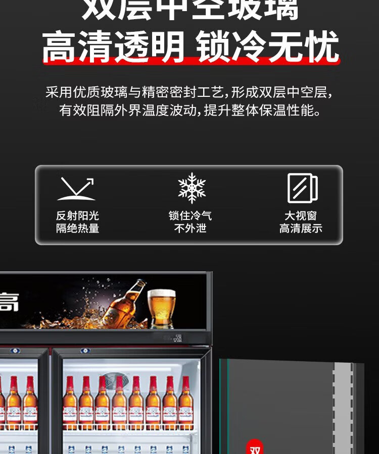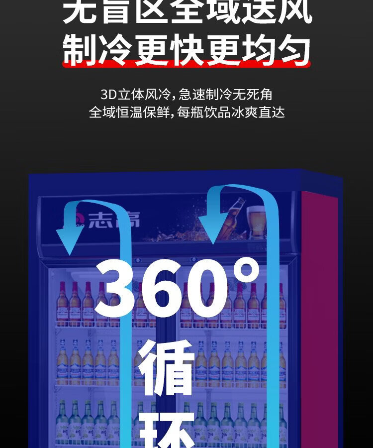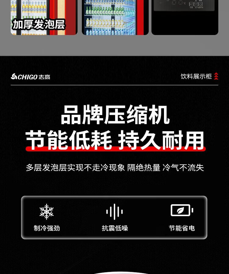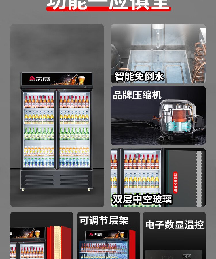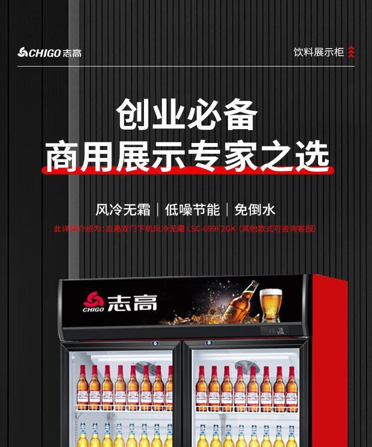 Chigo display cabinet refrigerated large-capacity beverage cabinet freezer commercial fresh-keeping cabinet supermarket glass door refrigerator vertical beer cabinet large three-door lower machine 1000L direct cooling energy saving first-level energy saving 30%