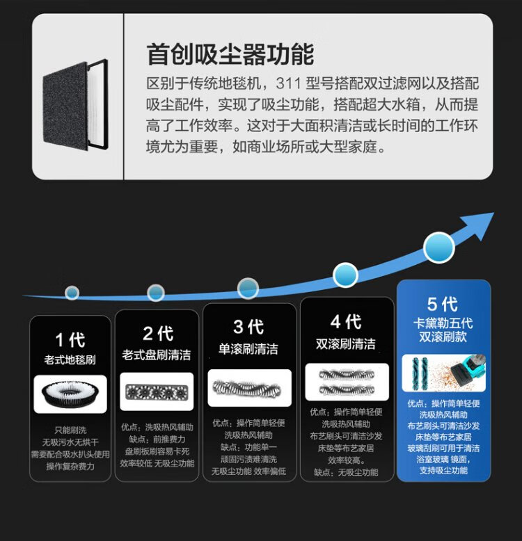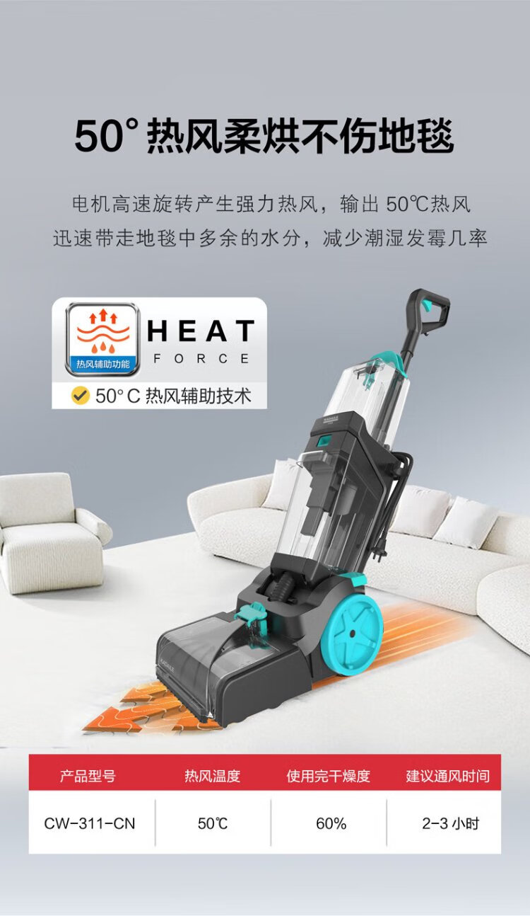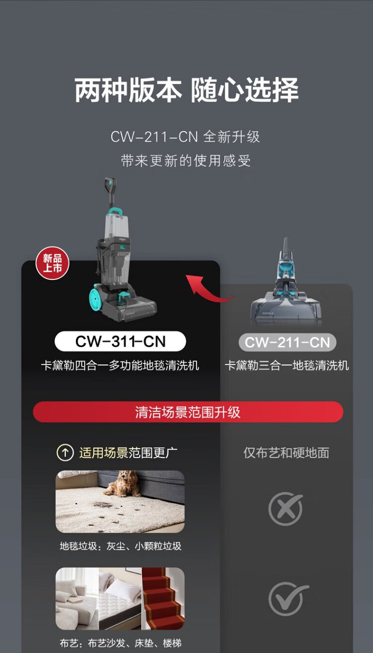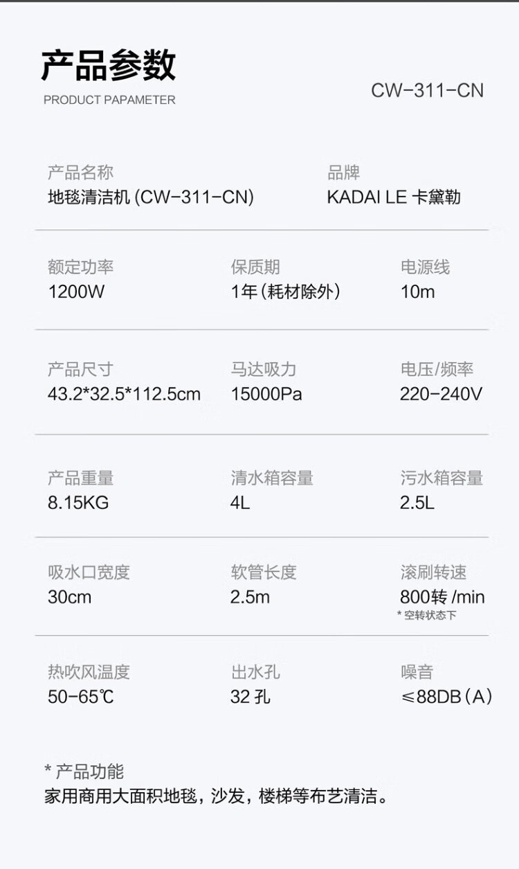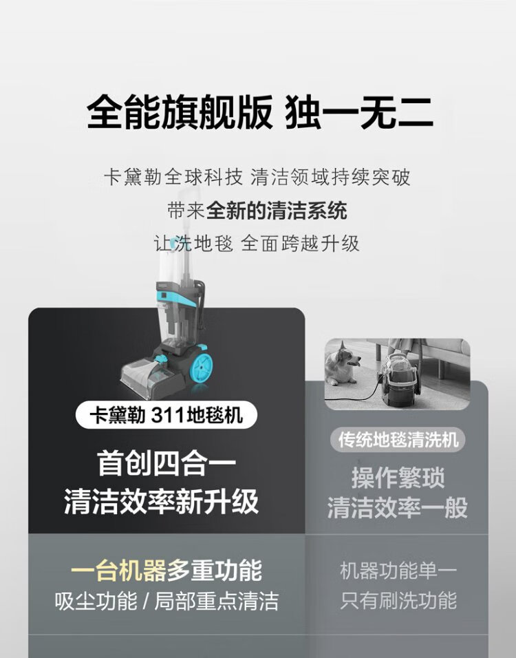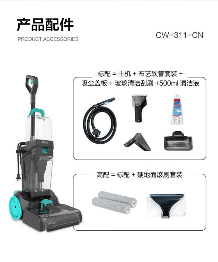 KADAILE carpet fabric mirror glass cleaning and vacuuming four-in-one carpet cleaning machine commercial hotel B&B billiard room carpet cleaning vacuuming auxiliary drying CW-311-CN (high configuration + 2 bottles of 1 liter cleaning fluid)