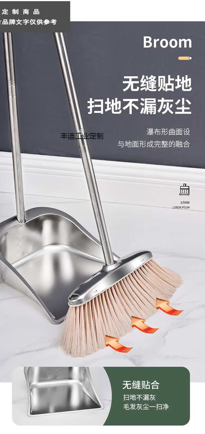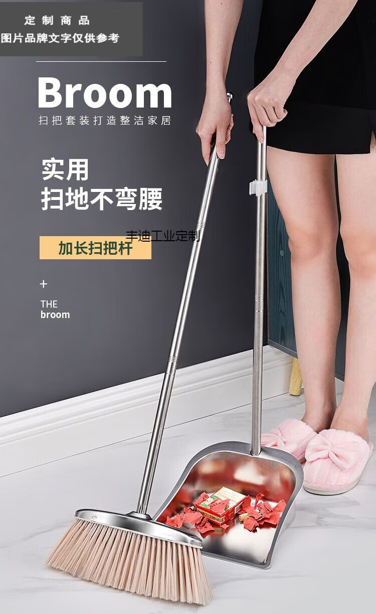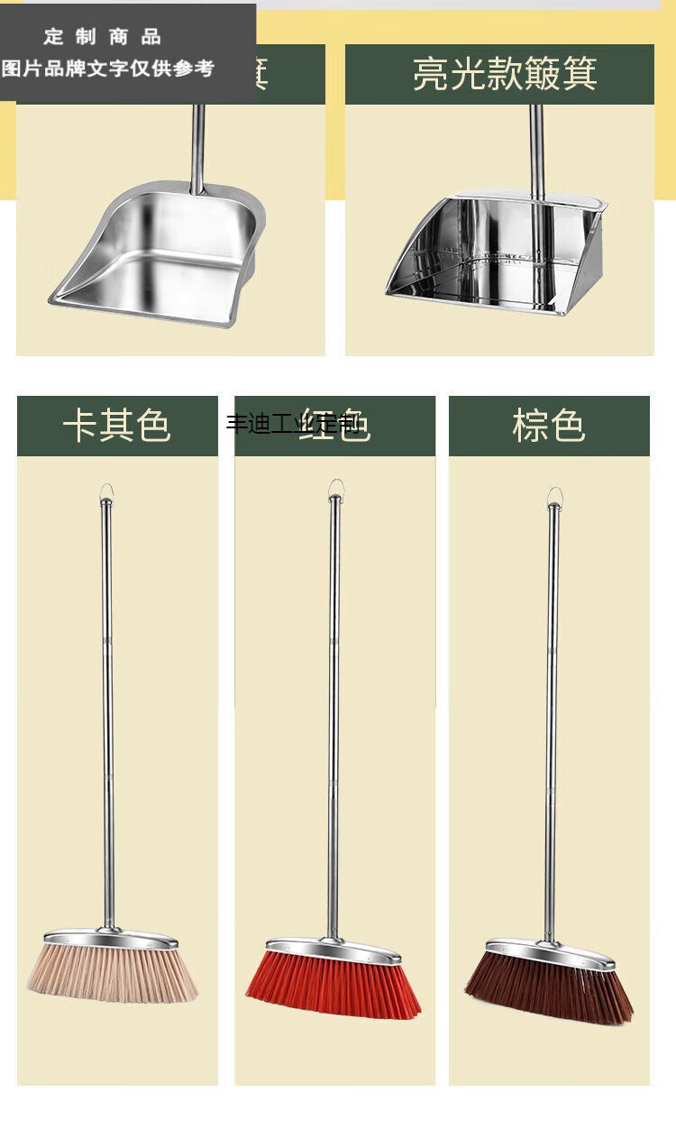 Stainless steel garbage shovel thickened single dustpan plus large size extra thick iron dustpan bucket broom set wear-resistant square extra thick will not rust for ten years