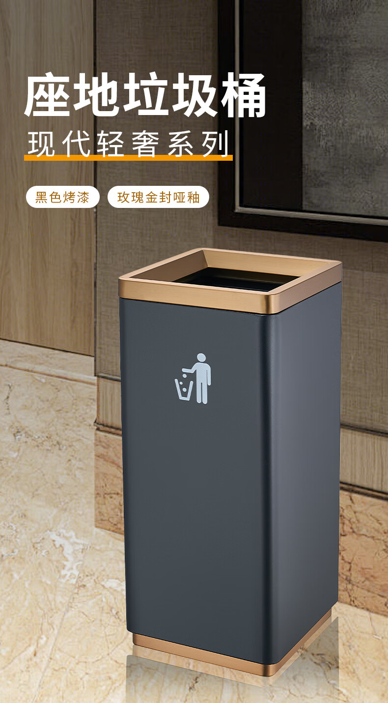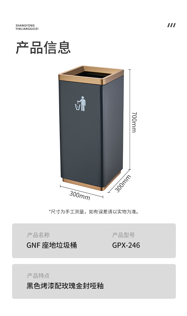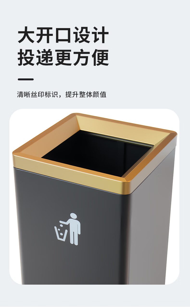 GNF trash can, stainless steel floor-mounted vertical type, direct throw, large size, large capacity, metal, indoor and outdoor, commercial, high-end hotel lobby, elevator entrance, office building, residential property, high-looking, light luxury, 20L sand silver steel, double barrels inside and outside GPX-9A