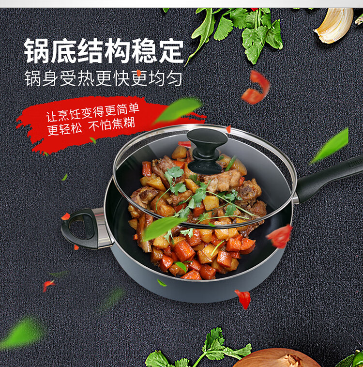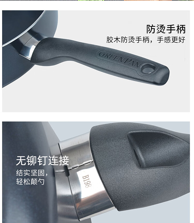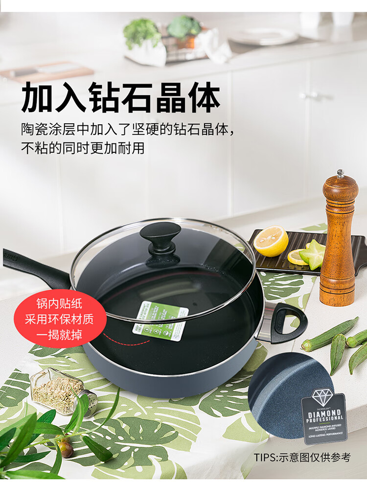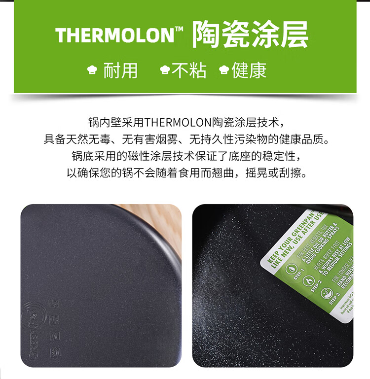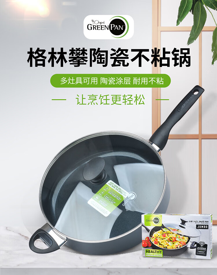 U.S. imported GreenPan ceramic-coated flat-bottomed non-stick wok frying pan with lid for kitchen use