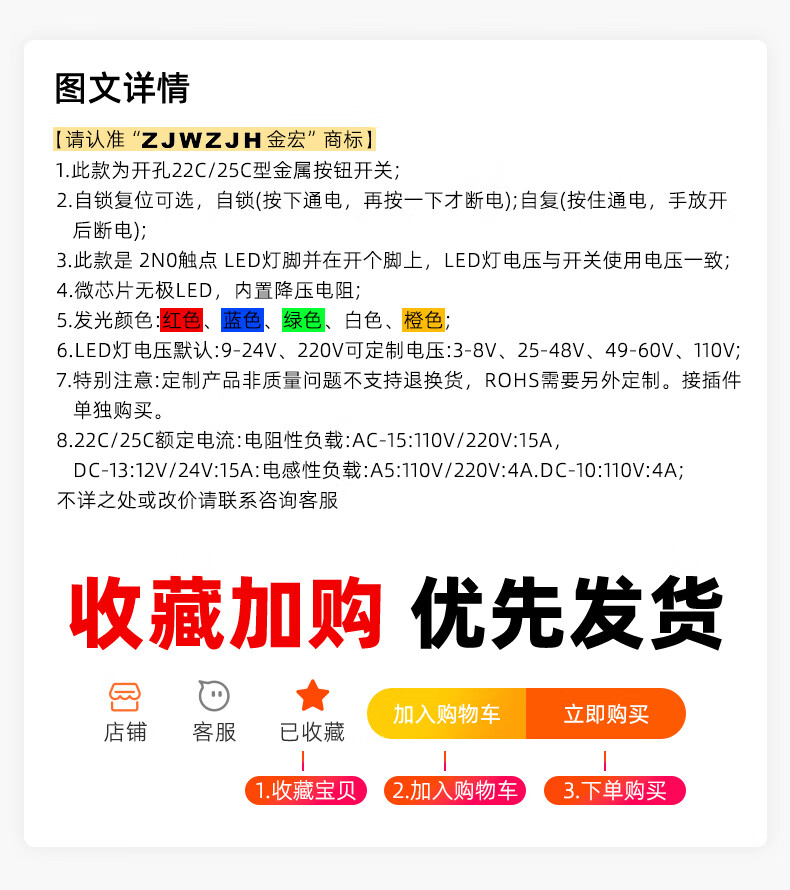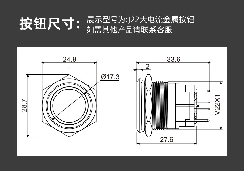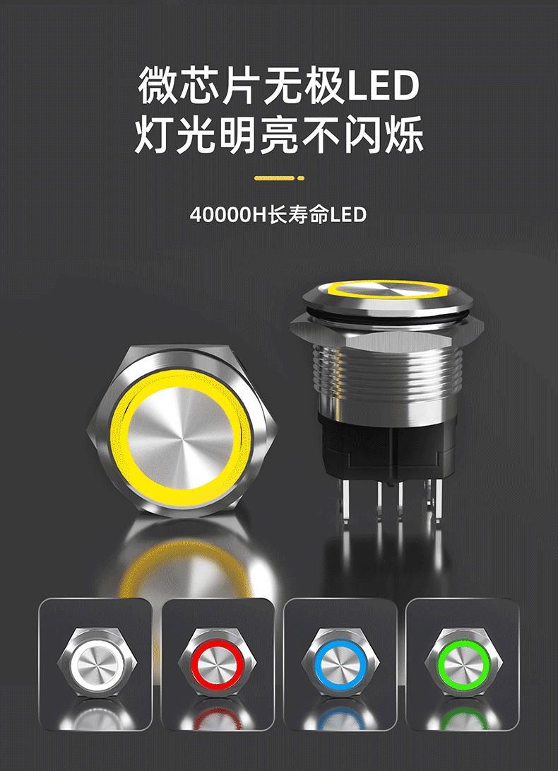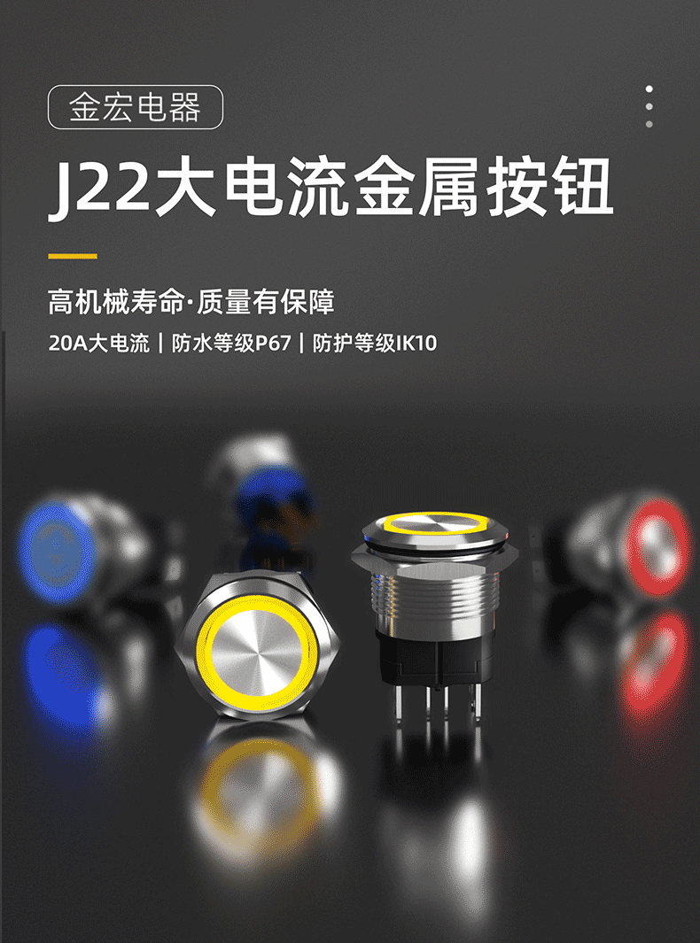 Jinhong metal button switch 22MM high current with light power supply start button reset button self-locking waterproof self-locking - stainless steel - ring power supply mark - blue 220V