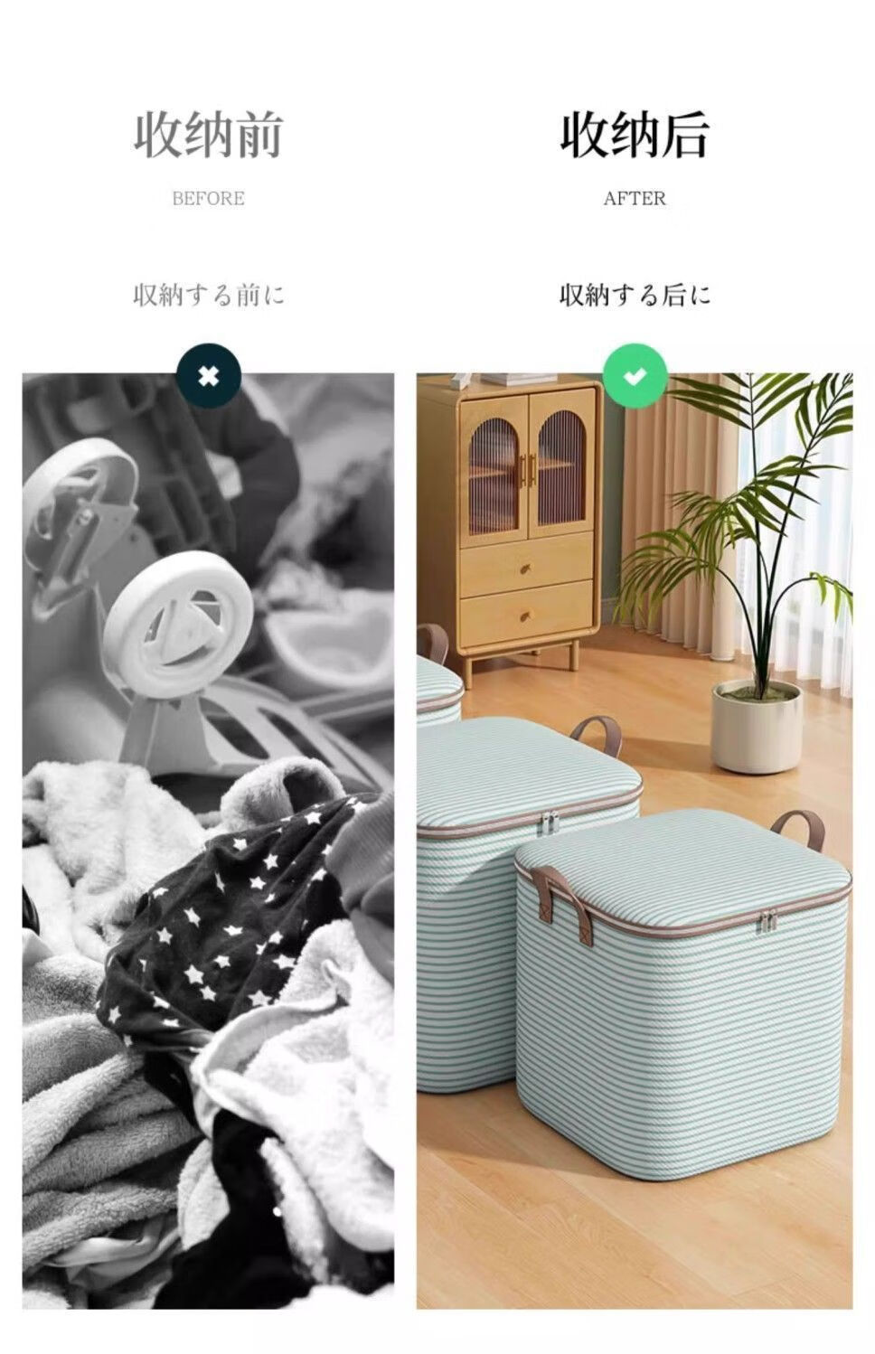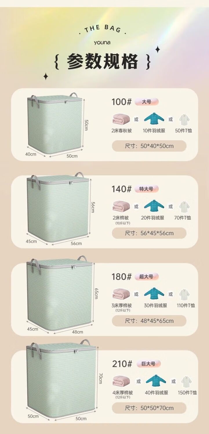 Chaosihui Moisture-Proof Moving Clothes Storage Bag Super Dormitory Clothes and Quilts Sorting Storage Box Large Capacity Return Home Storage Bag Upgraded Thickened Green Stripe Huge Size 360L Holds Seven Quilts and 40 Pieces of Clothes