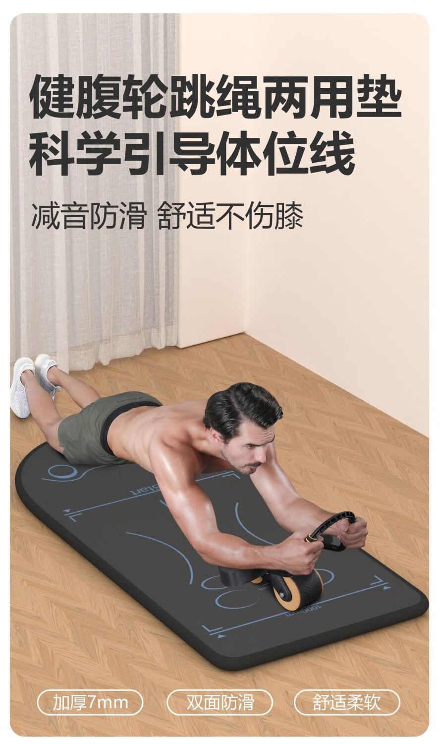 Perfect Abdominal Wheel Special Mat Anti-Slip Silent Position Mat Sports Skipping Rope Silicone Pad Shock Absorbing Sound Insulation Non-Slip Wear Resistant Cool Black Abdominal Wheel-Skipping-Yoga Special Mat 160cm*70cm Thickness 6mm