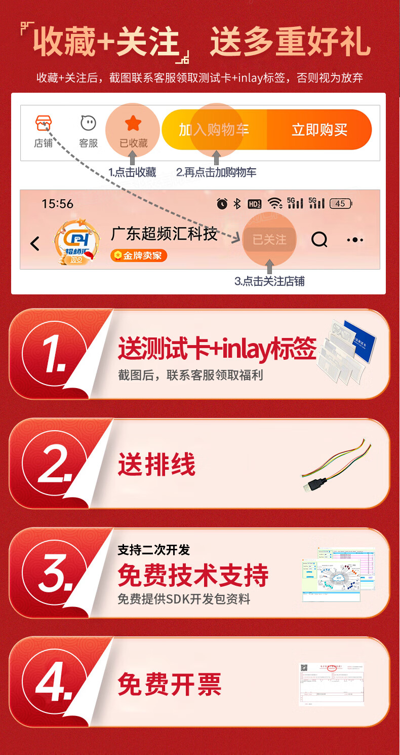 Rfid reader/writer module ultra high frequency module long distance high power small module adapted to each CPH-302 adapter board (232485WG26USB