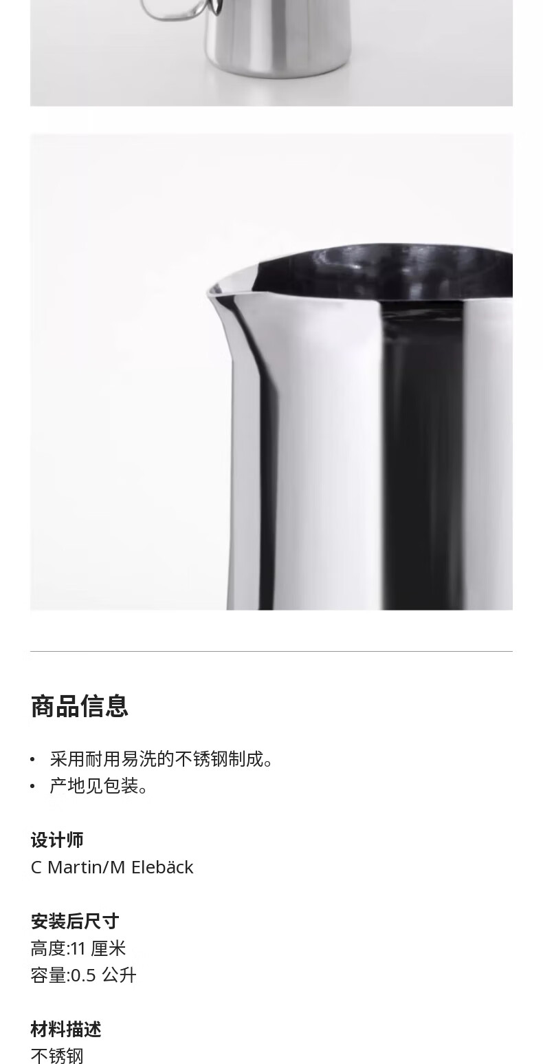 IKEA (IKEA) MATTLIG milk foaming pot stainless steel teapot coffee appliance hand brewed coffee pot milk foaming pot 0.5L