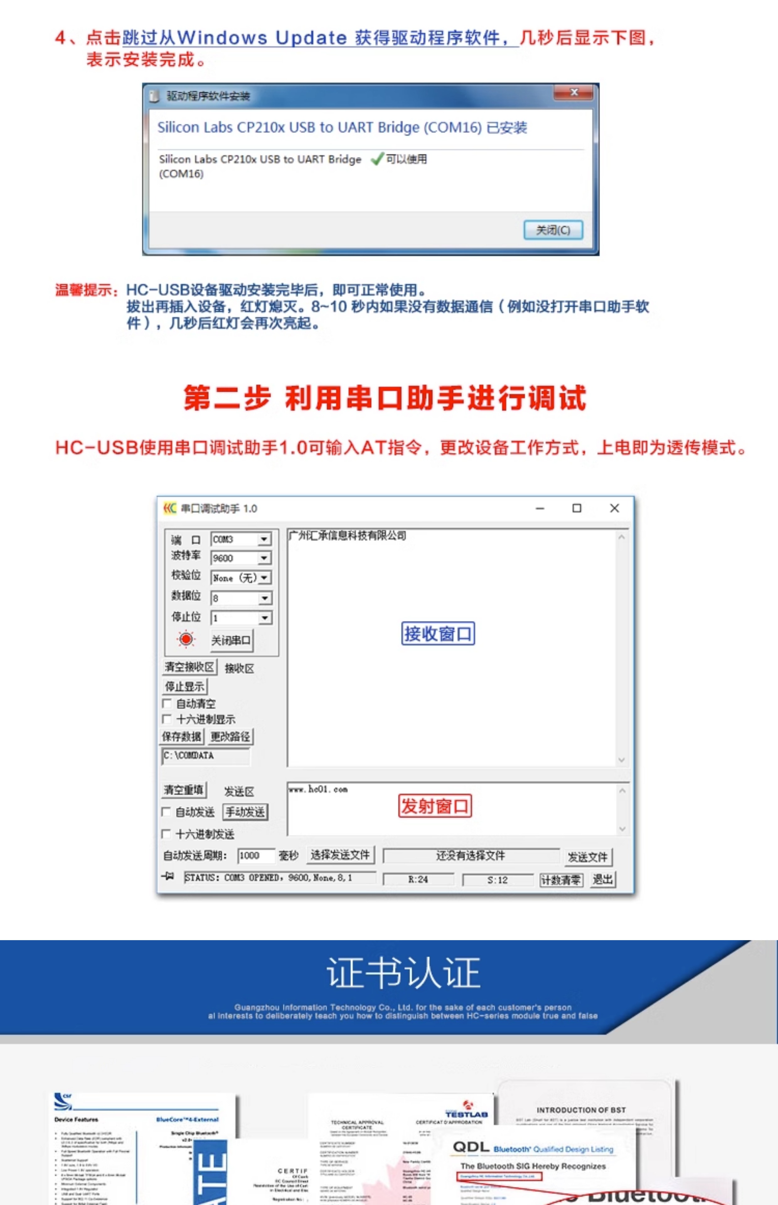 Yue Changsheng Huicheng HC-05/06/08/11/12 Wireless Bluetooth module PC virtual serial port USB to TTL suitable Huicheng HC-06-USB (factory default SPP host)