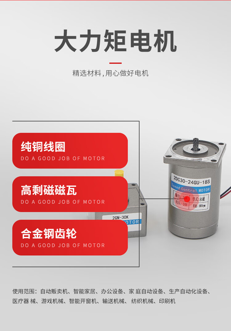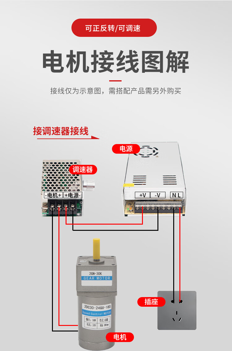 Yue Changsheng 12V24V DC speed regulating motor 30W gear reduction motor high torque slow speed motor micro small gearbox 75K (0-24 turns per minute) 24V motor + 20A forward and reverse speed regulator