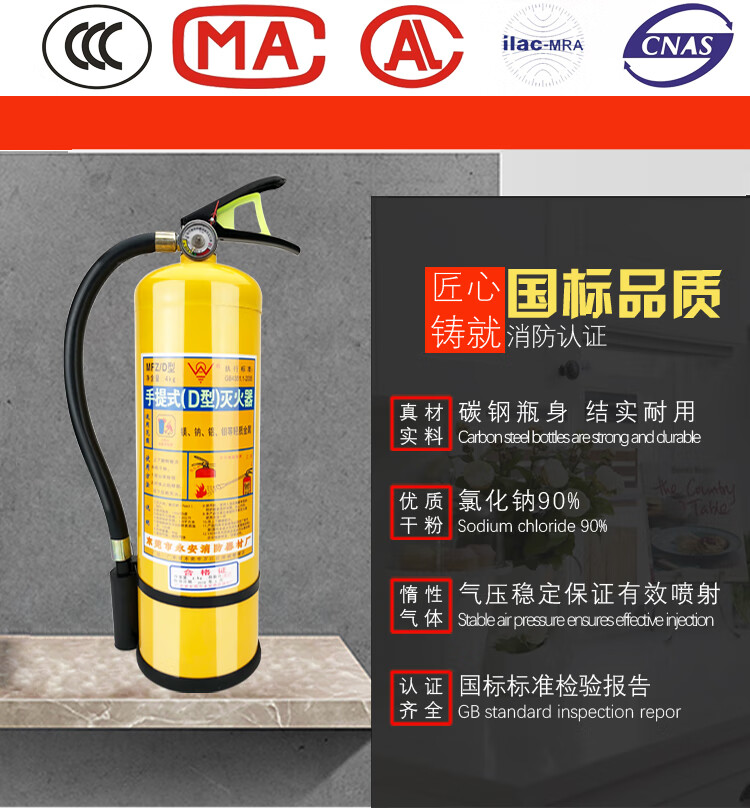 Portable 4kg Class D fire extinguisher D-type metal yellow bottle magnesium sodium aluminum molybdenum dry powder fire extinguisher 4kg7kg30kg Class D trolley type 35kg