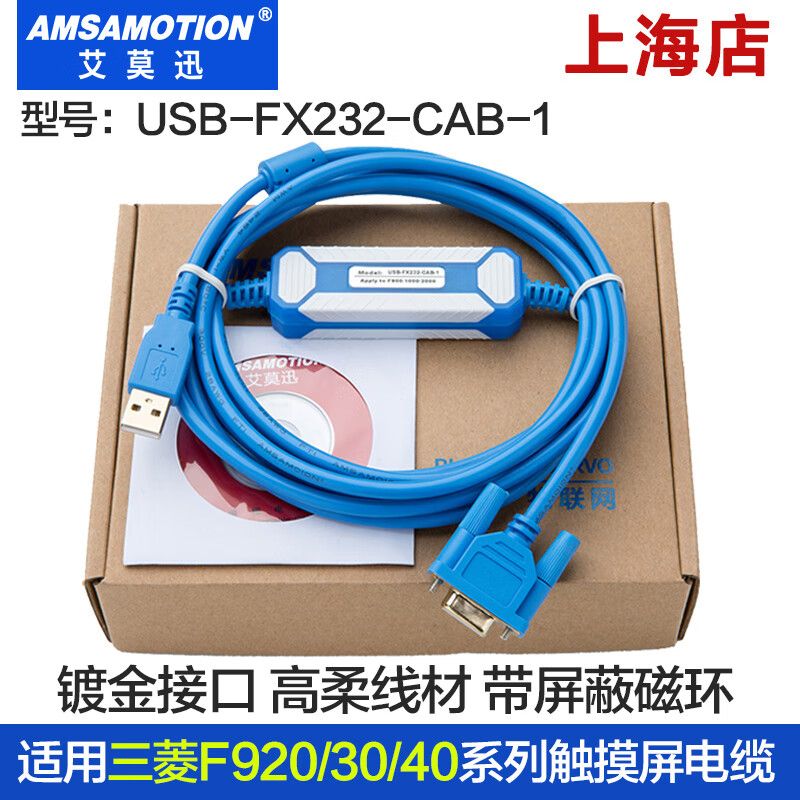 Yue Changsheng is suitable for Mitsubishi touch screen programming communication F920/30/40GOT data download cable USB-FX232- (FTDI) black USB-FX232-CAB-1+ isolation 3M