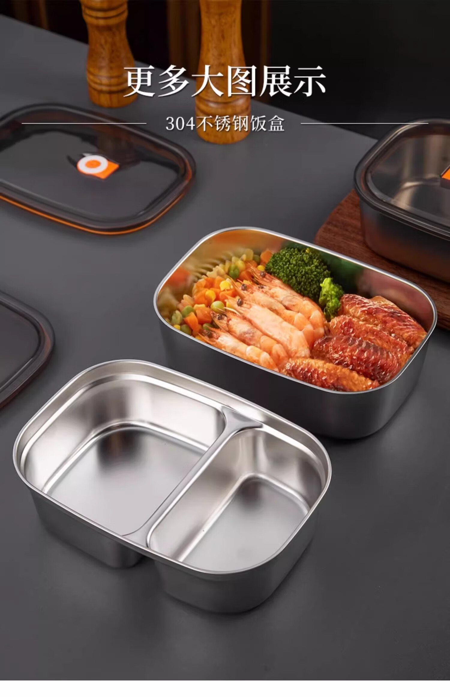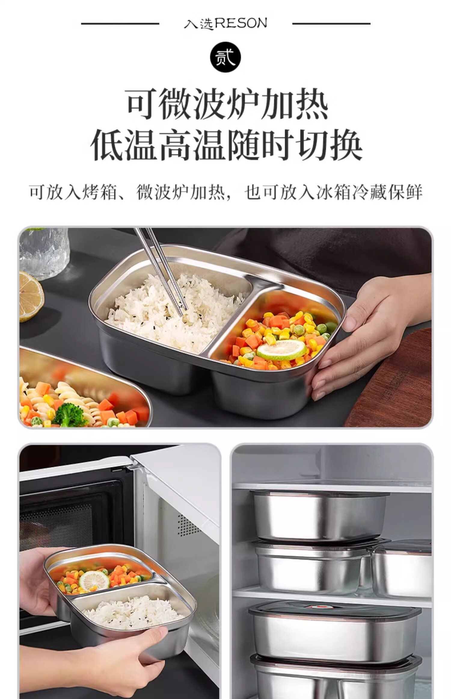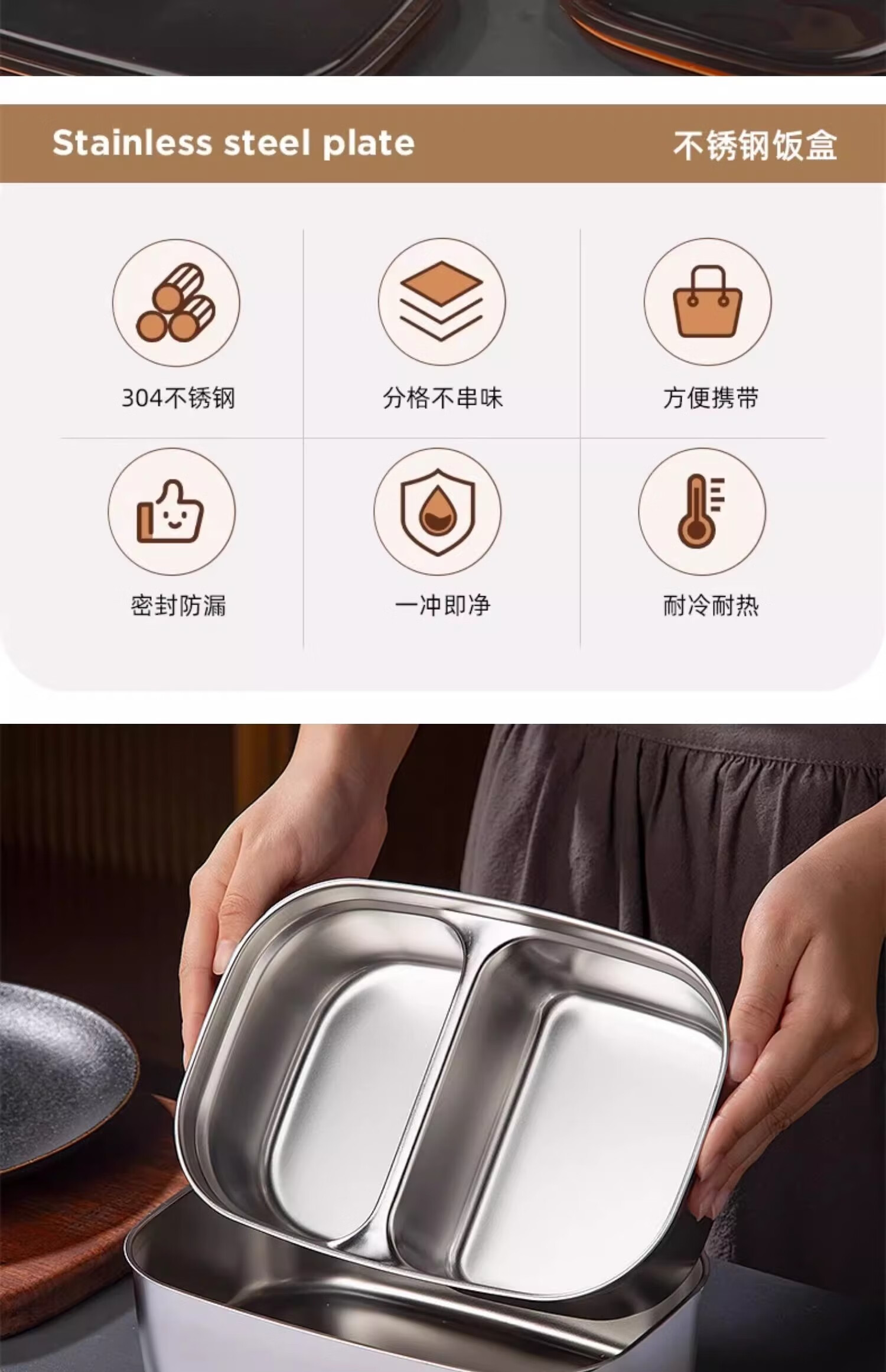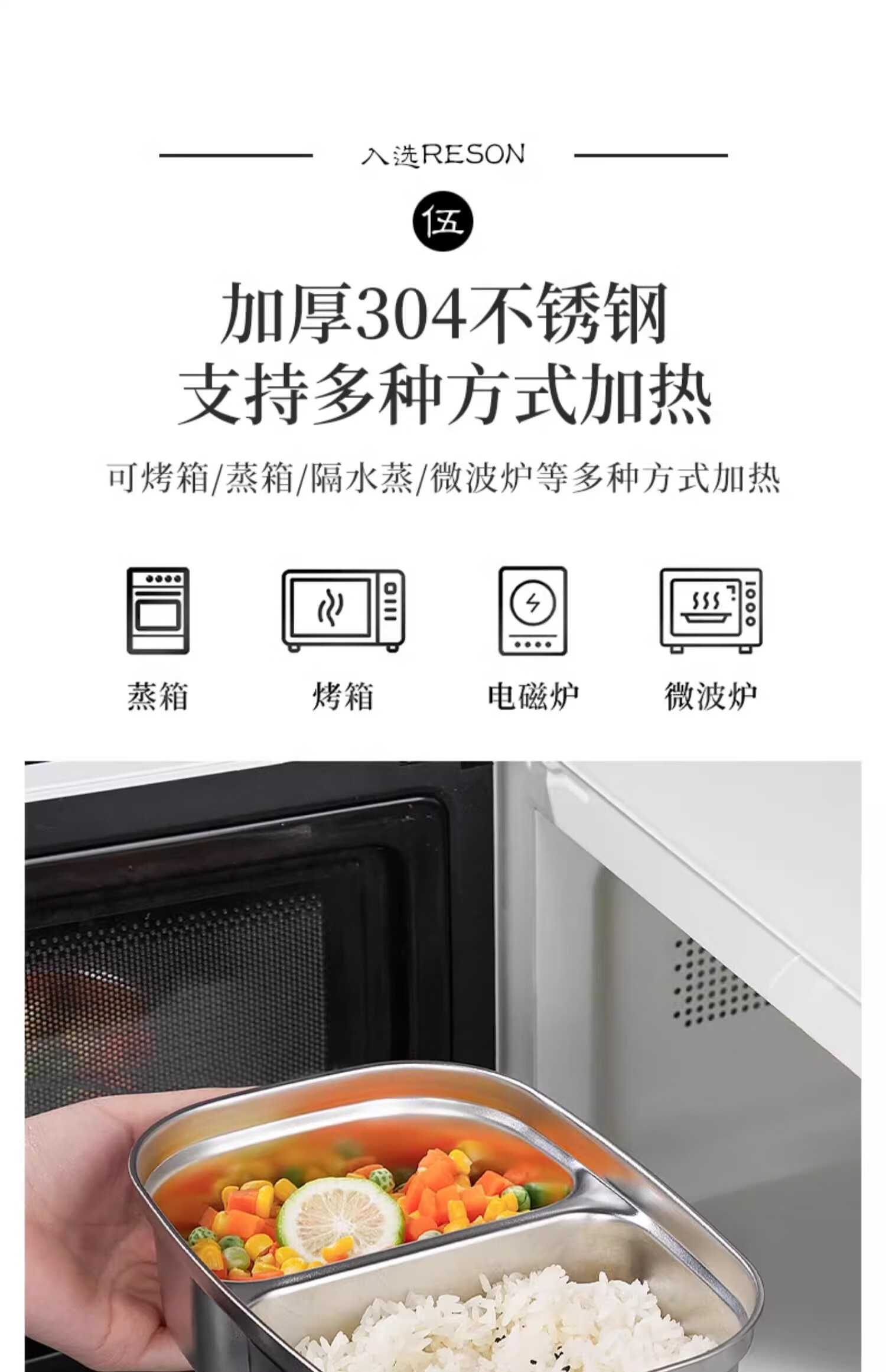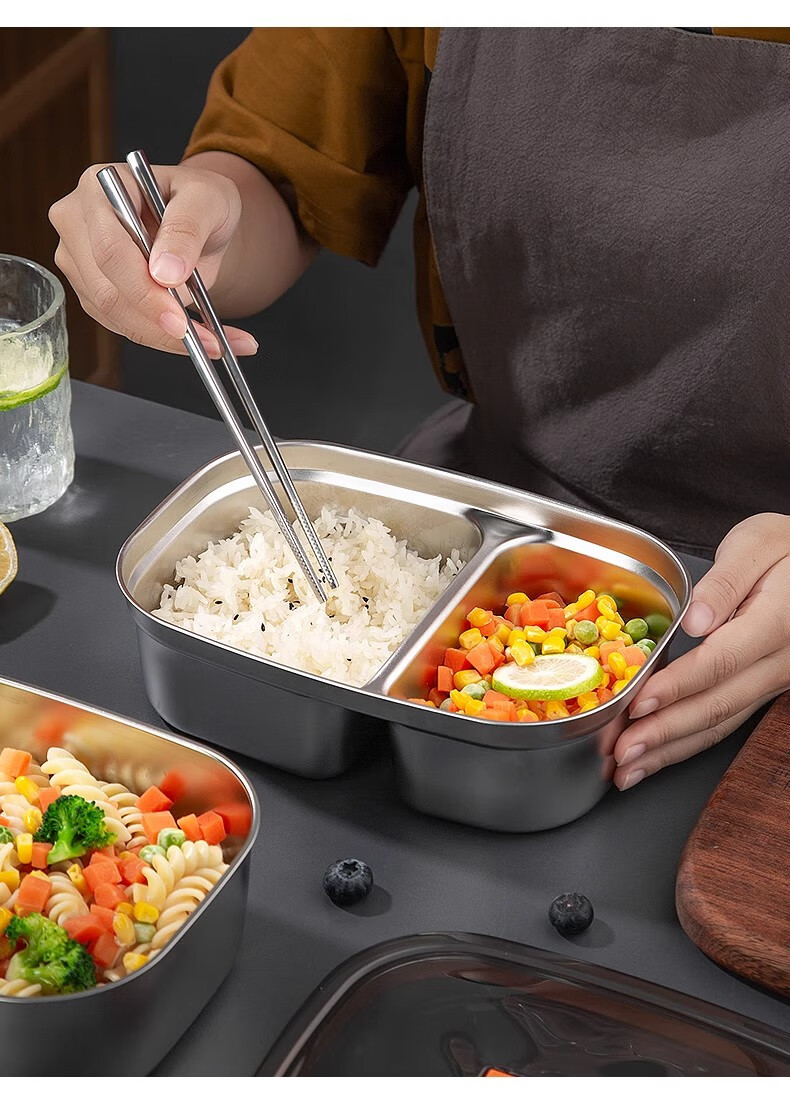 Feiyuejia Insulated Lunch Box Microwaveable 304 Stainless Steel Single and Double Compartment Lunch Box for Office Workers and Primary School Students Portable Lunch Box Microwaveable - Double Compartment with Lid 1200ml