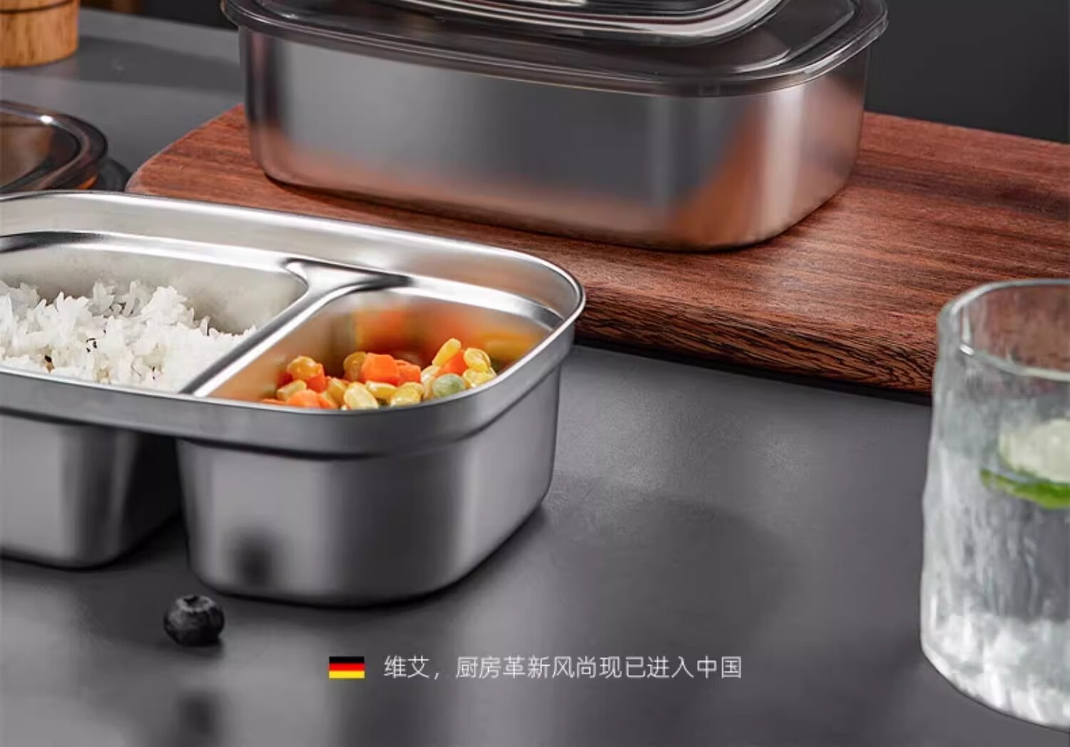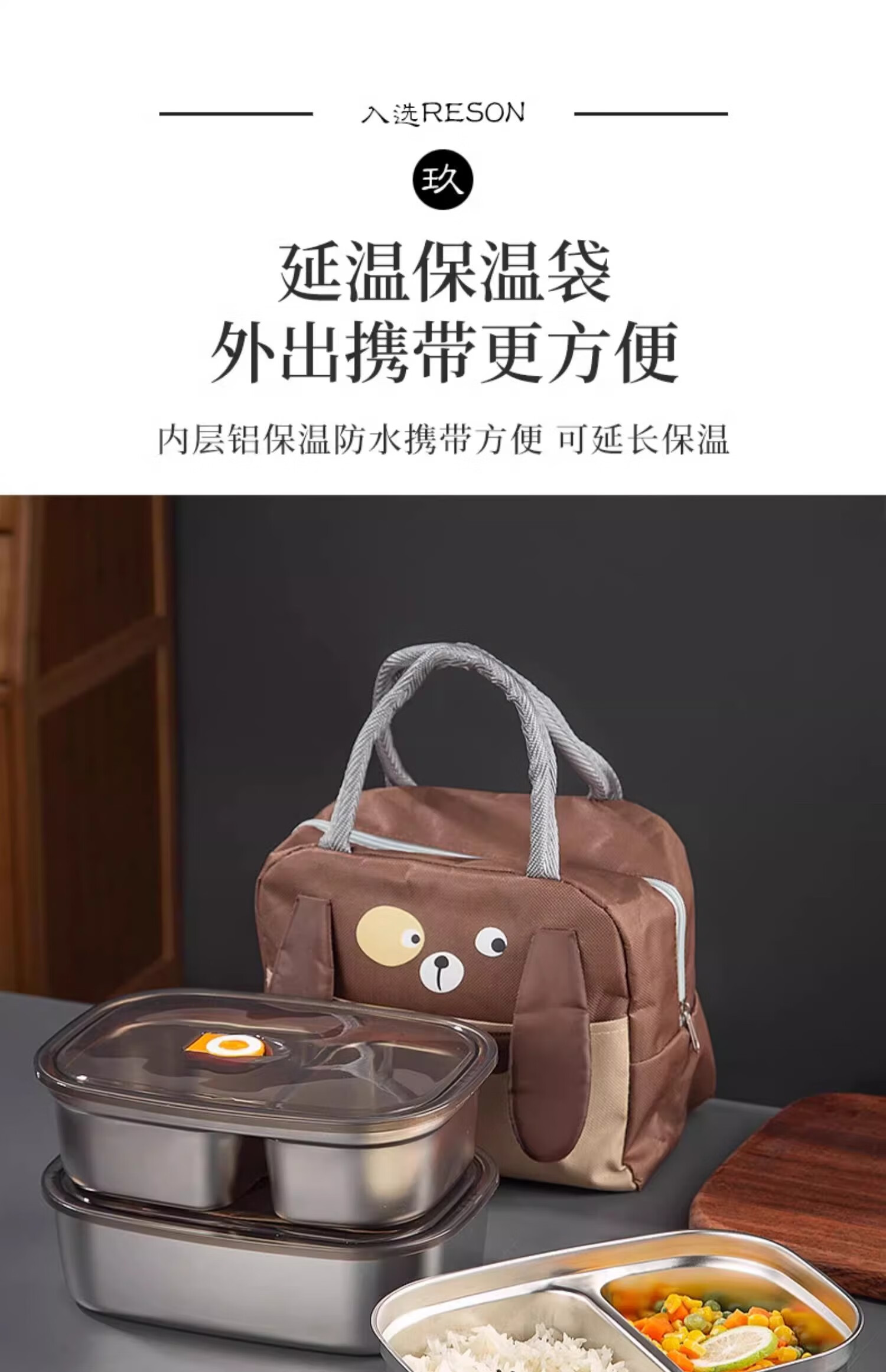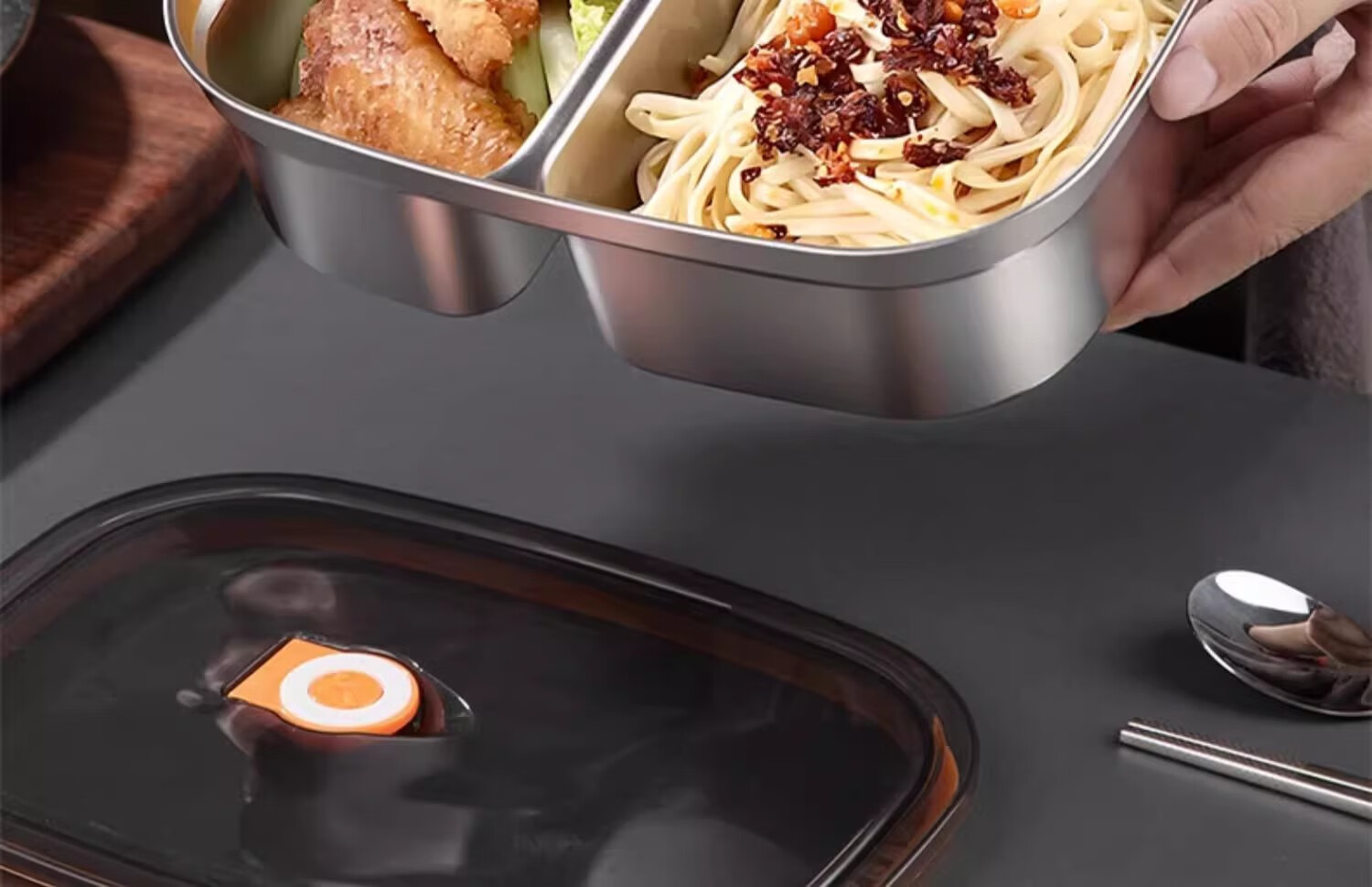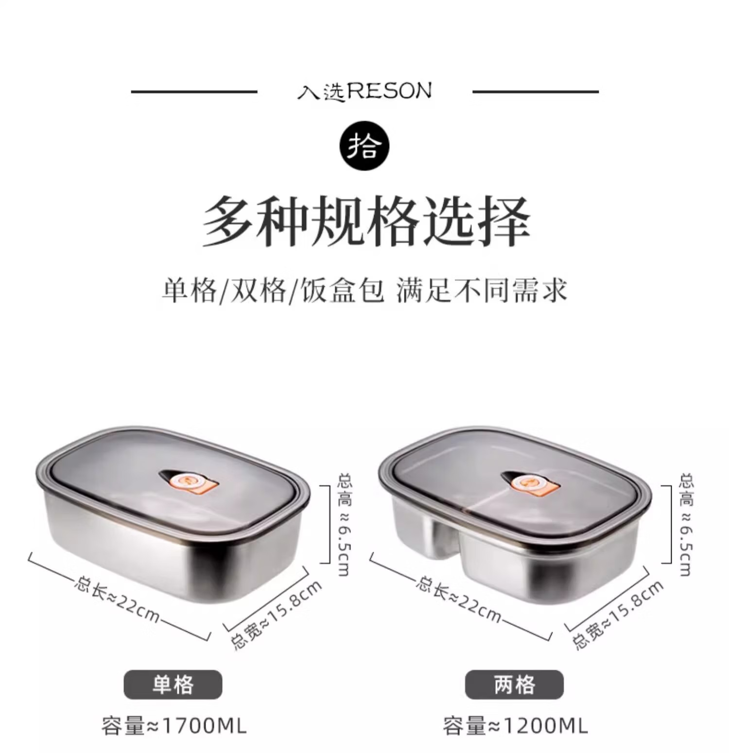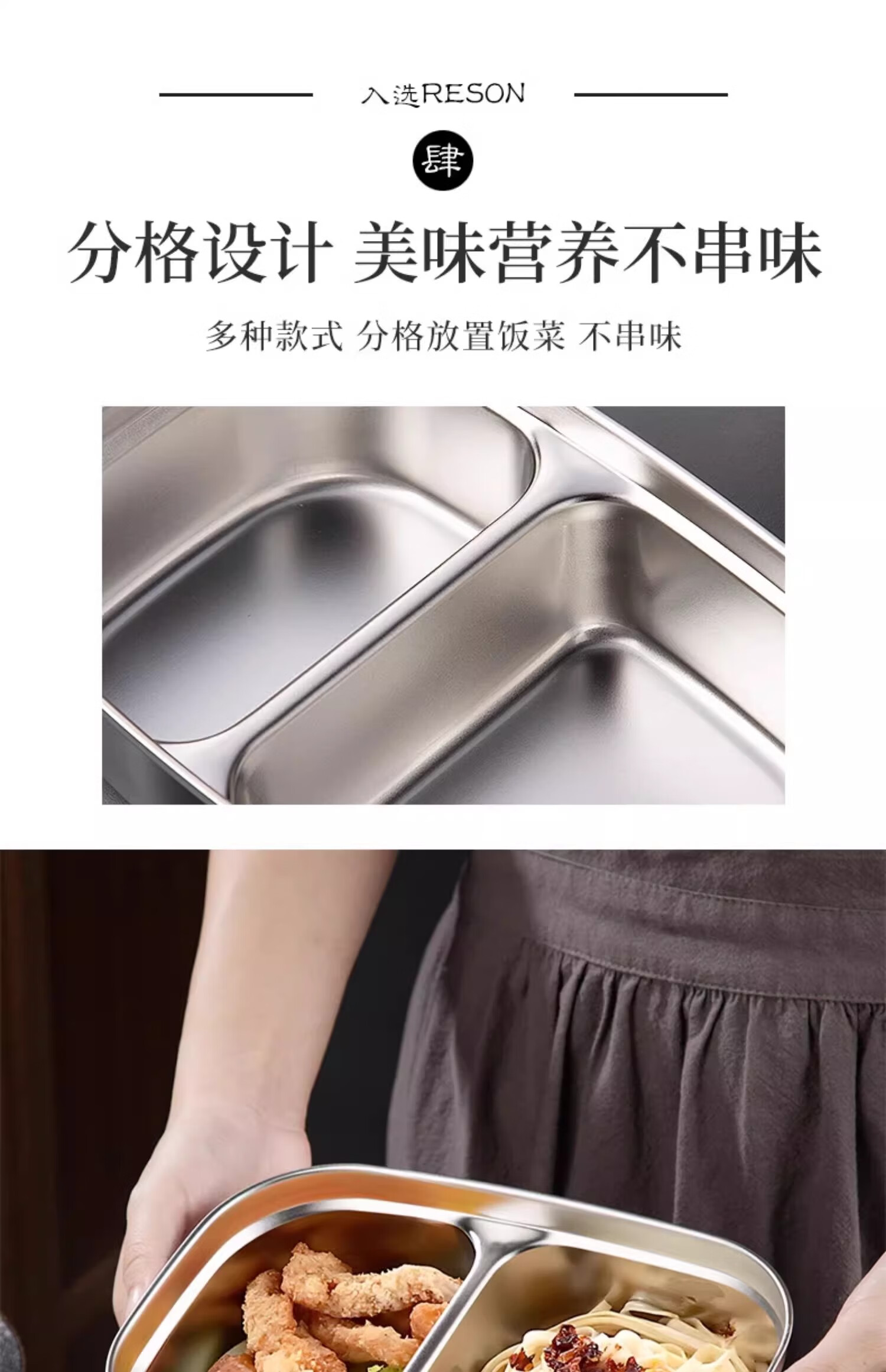 Feiyuejia Insulated Lunch Box Microwaveable 304 Stainless Steel Single and Double Compartment Lunch Box for Office Workers and Primary School Students Portable Lunch Box Microwaveable - Double Compartment with Lid 1200ml