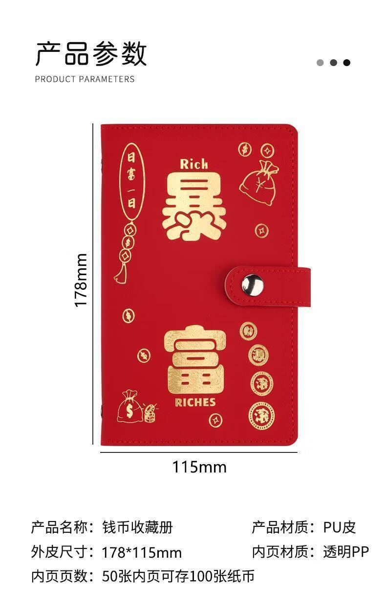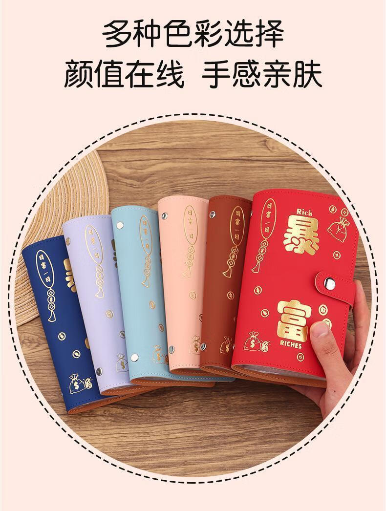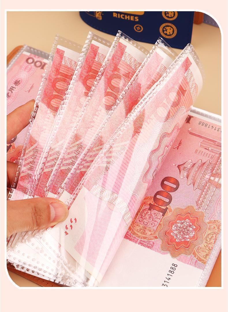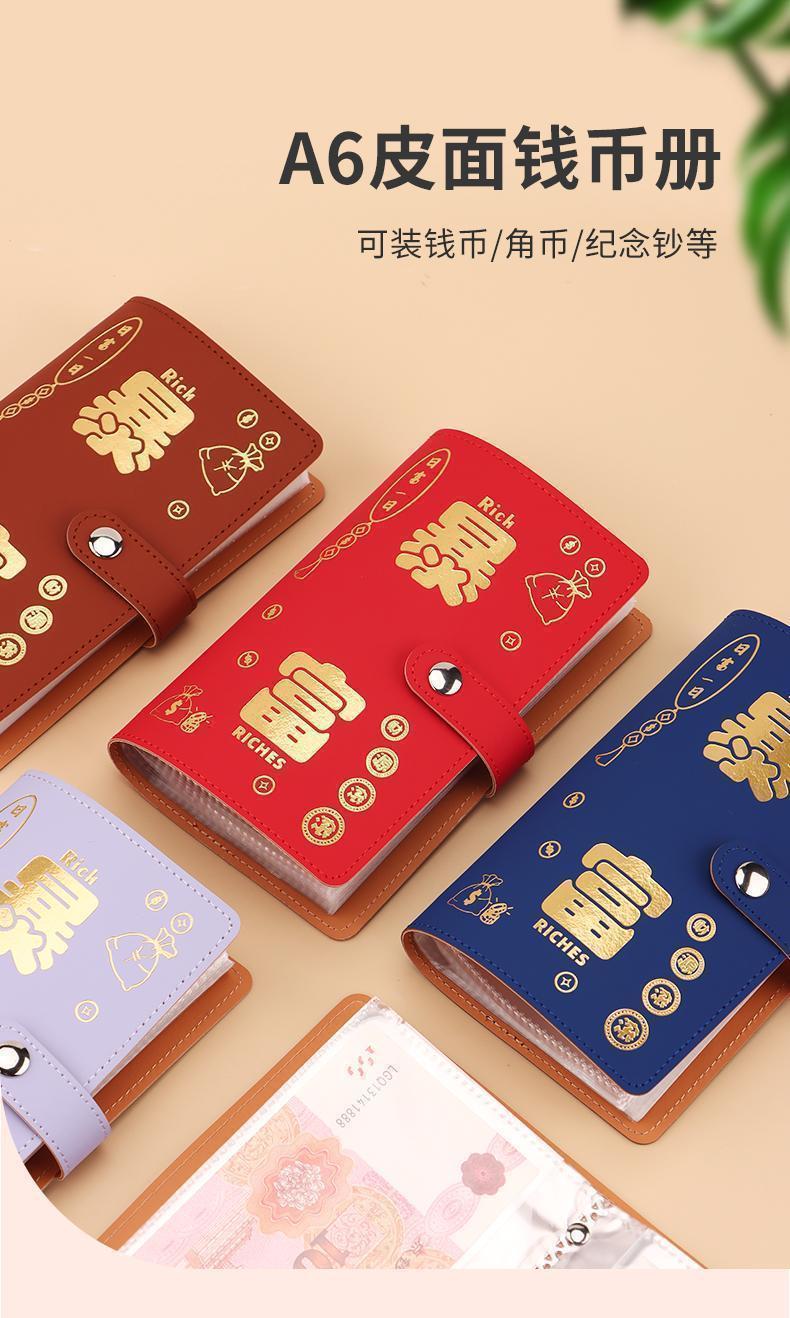 MAIWEINI Wallet Women's Cash Saving Book Red Packet Storage Bag Waterproof Large Capacity Commemorative Banknote Storage Book Paper Coin Financial Management A6 Rich Red Press Deduction 50 Pages - 2 per Page Double Layer Stitching