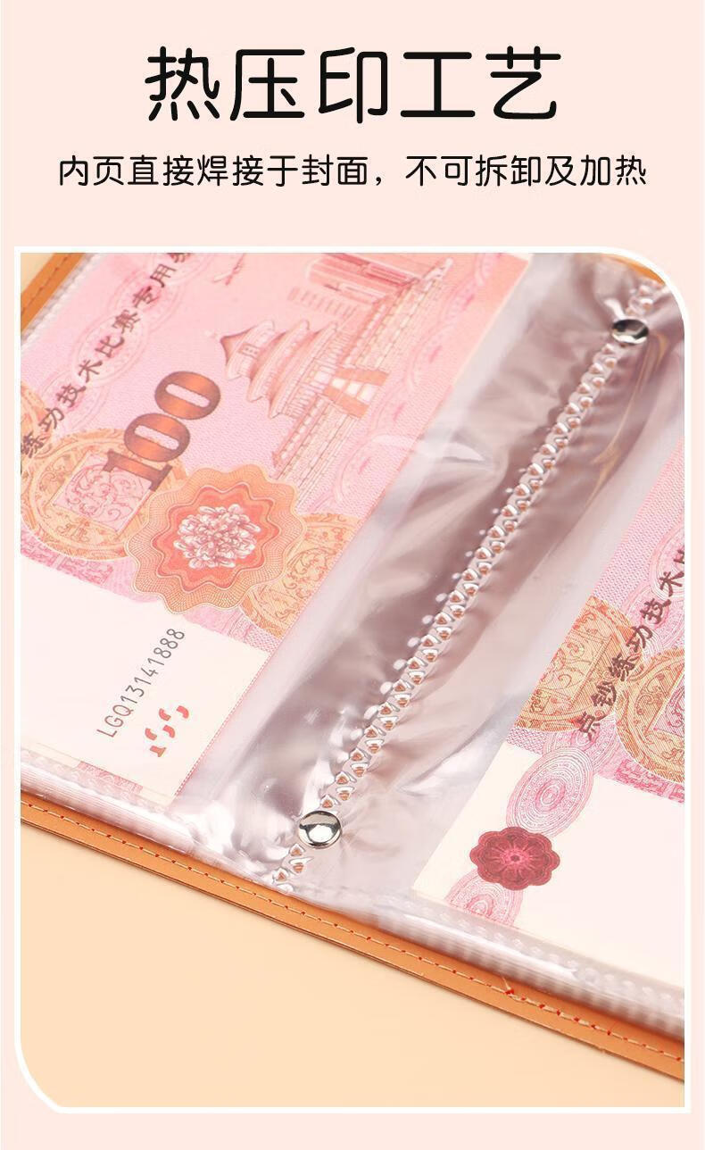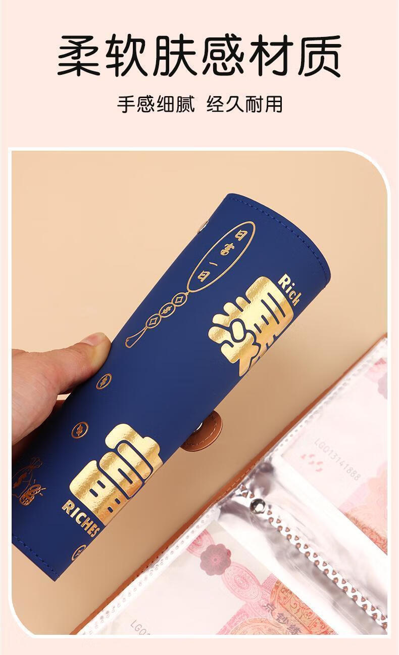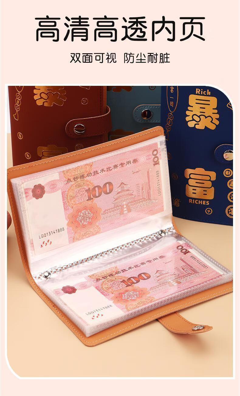 MAIWEINI Wallet Women's Cash Saving Book Red Packet Storage Bag Waterproof Large Capacity Commemorative Banknote Storage Book Paper Coin Financial Management A6 Rich Red Press Deduction 50 Pages - 2 per Page Double Layer Stitching