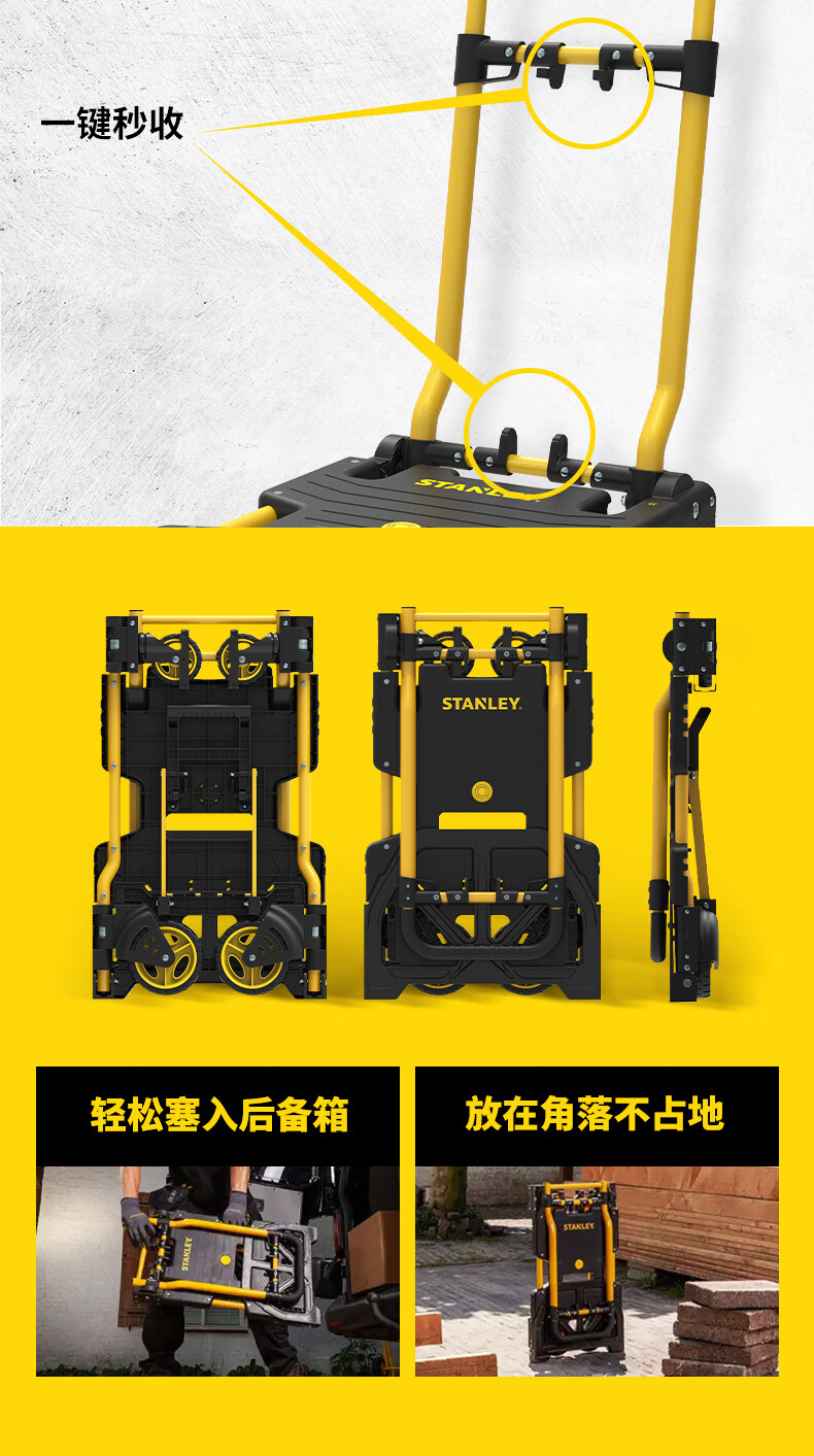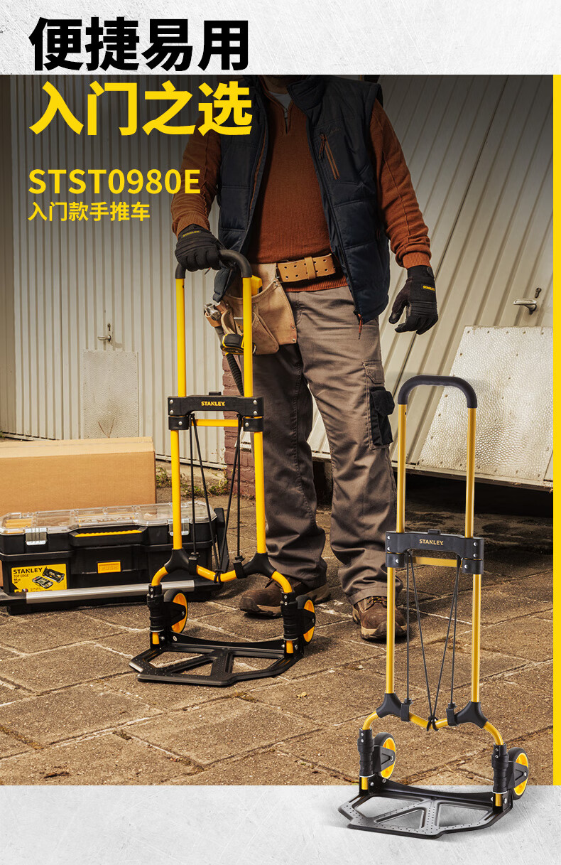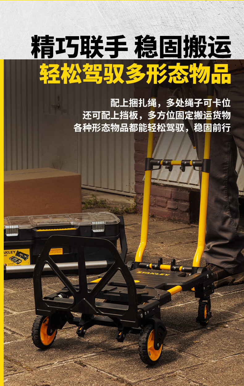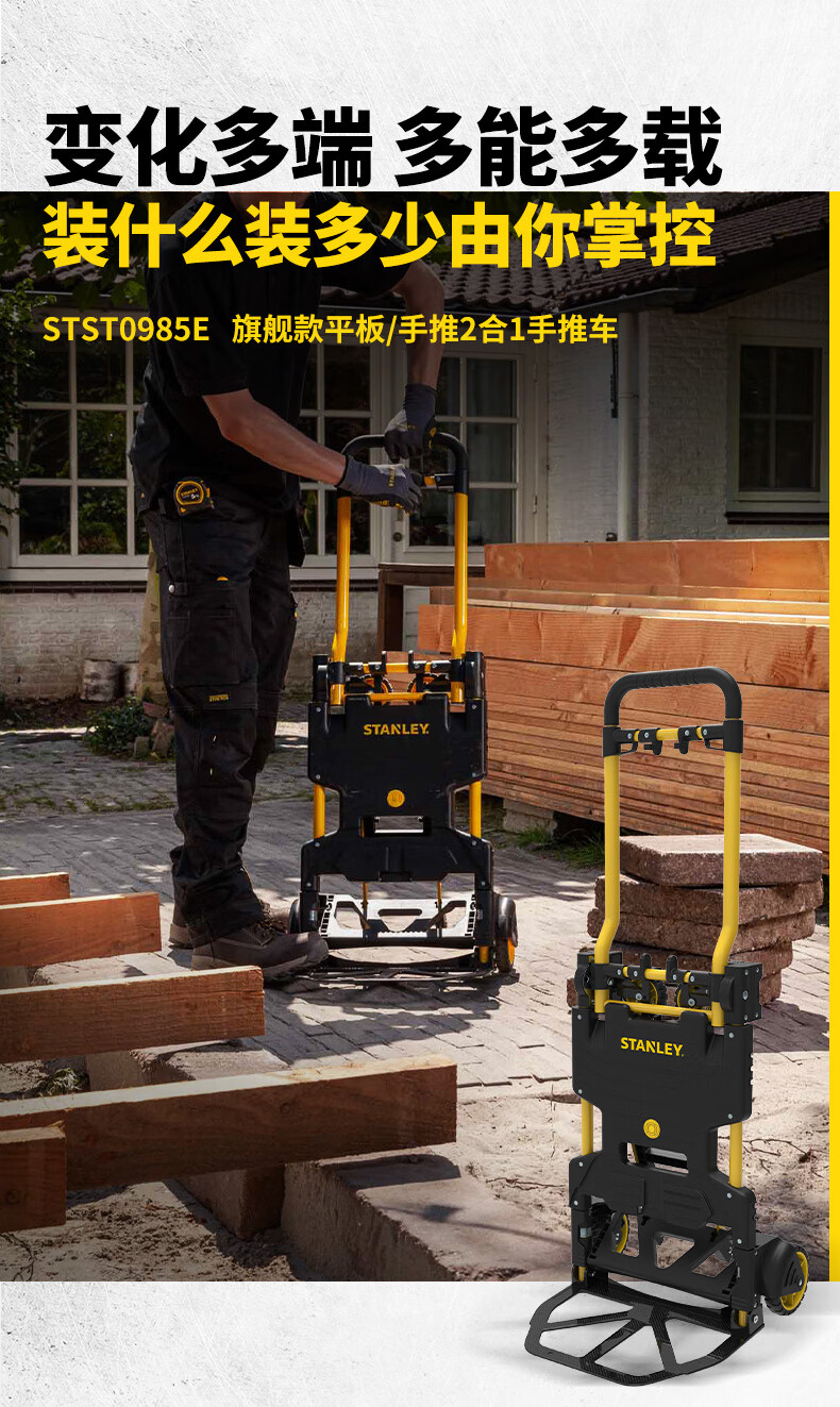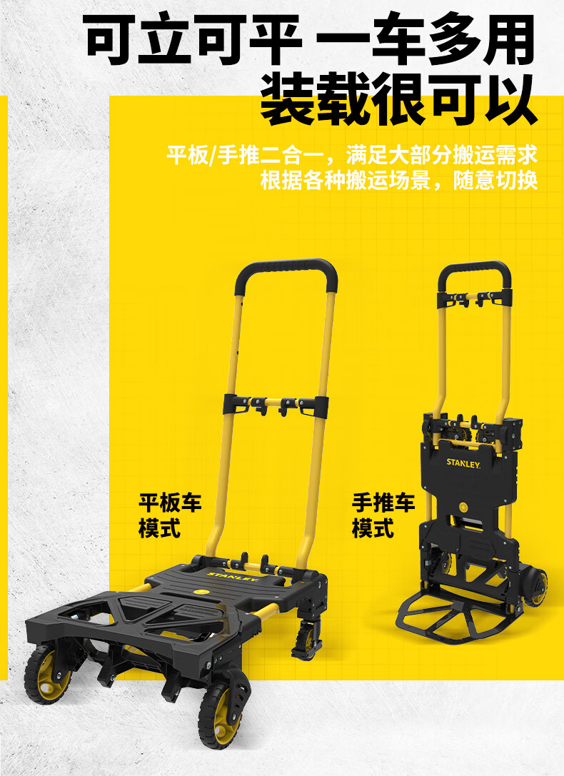 Stanley Tool Trolley Folding Toolbox Hand Trolley Home Mobile Cargo Handling Trolley Flat Cart 2-in-1 Foldable Trolley STST0985